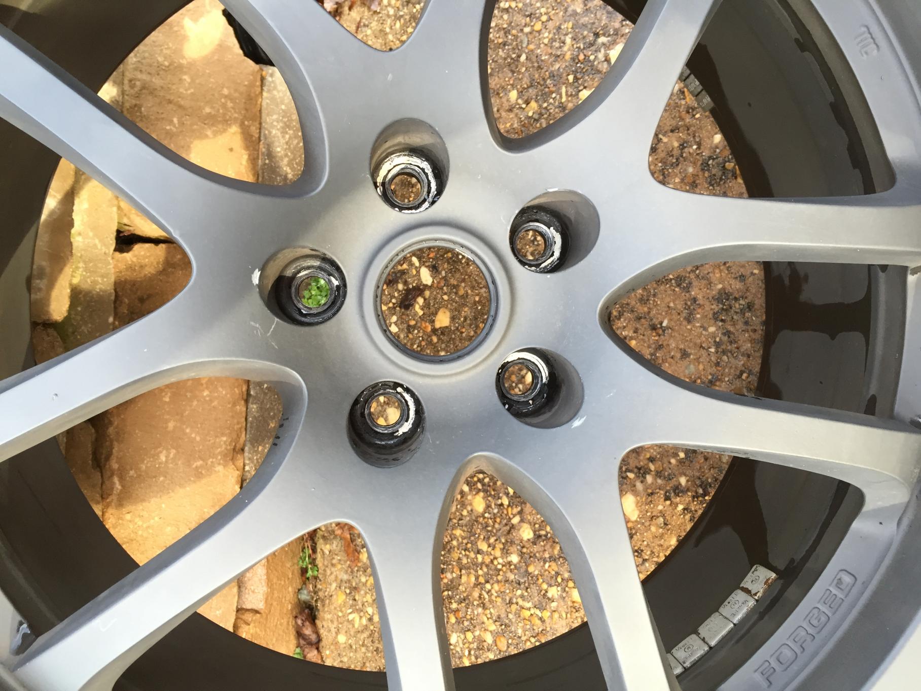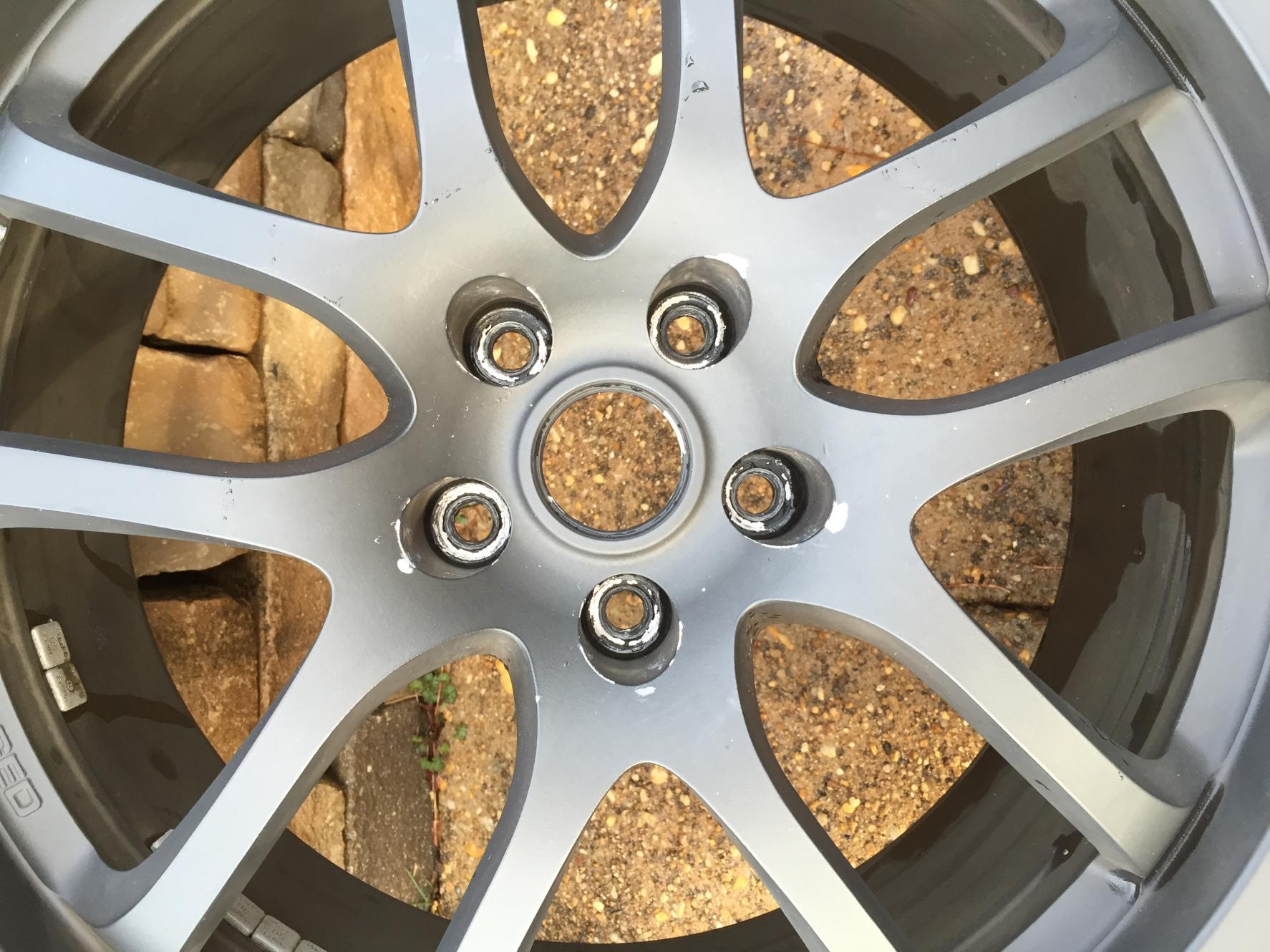 Minor blemishes around lug nuts and one tire has blemish from tire shop mounting, minor rash that you cant see because of the powdercoating, no bends or cracks...