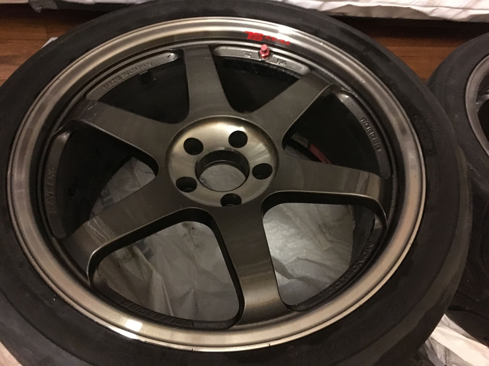 FS: 19x9.5 +22 / 19x10.5 +22 Volk TE37SL wheels in Pressed Graphite finish. 5x114.3 bolt pattern. Wheels are in excellent condition. No curb rash or damage! 295/30/19 Toyo R888 tires on all 4 wheels with about 60% tread left.