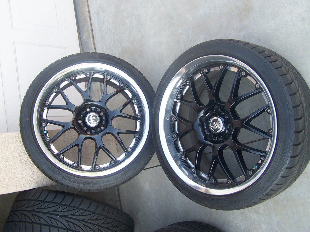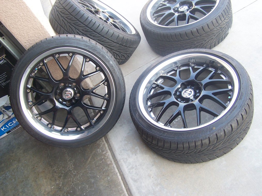 These are special order gloss black Volk SF Winning 19x8.5 (5x114.3) all around with a +30 offset for all 4. They are wrapped with Fuzion ZRI 245/35/19 tires with 75% tread left on them. The rims are pretty much perfect with exception to one rim that has about 1 cm rash on it. Each rim goes for around $650 and the tires are around $170 each. So total would be around $3500+. I'm looking to get $2000 + Shipping for everything (price lowered from $2300). If you want to pick them up, you are more than welcome to. Socal buyers are preferred. PM about any questions. (rims are on the car)