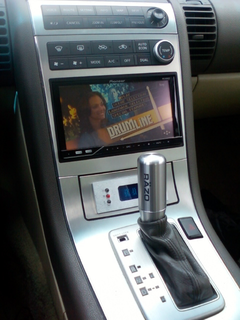 i remember there being some discussion about whether a flip-face DD unit would work with our shifters in park. i don't know about the stock shifter, but the pioneer avhp4200dvd clears the razo shift **** with no modifications.