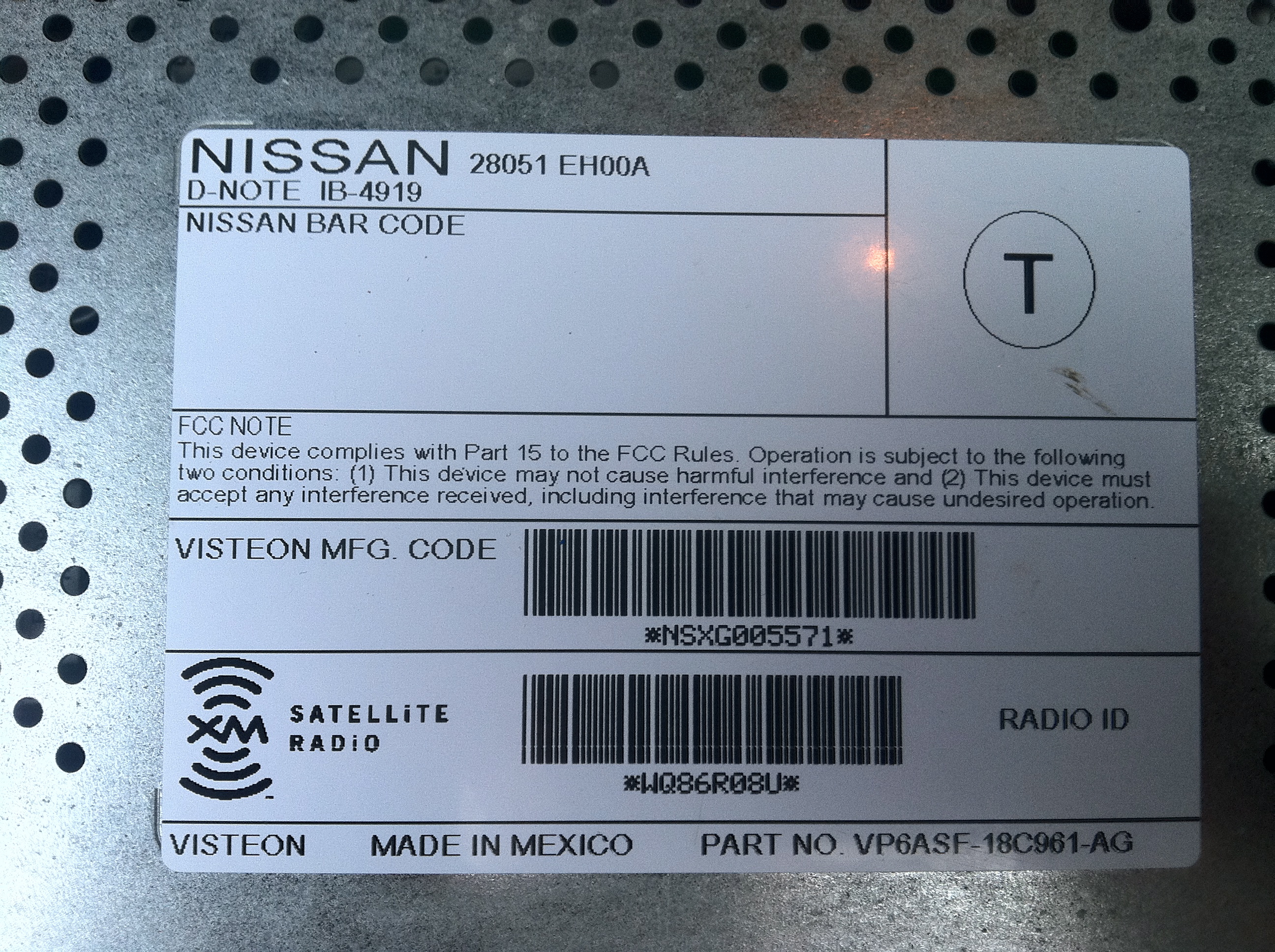 OEM XM satellite radio receiver and antenna