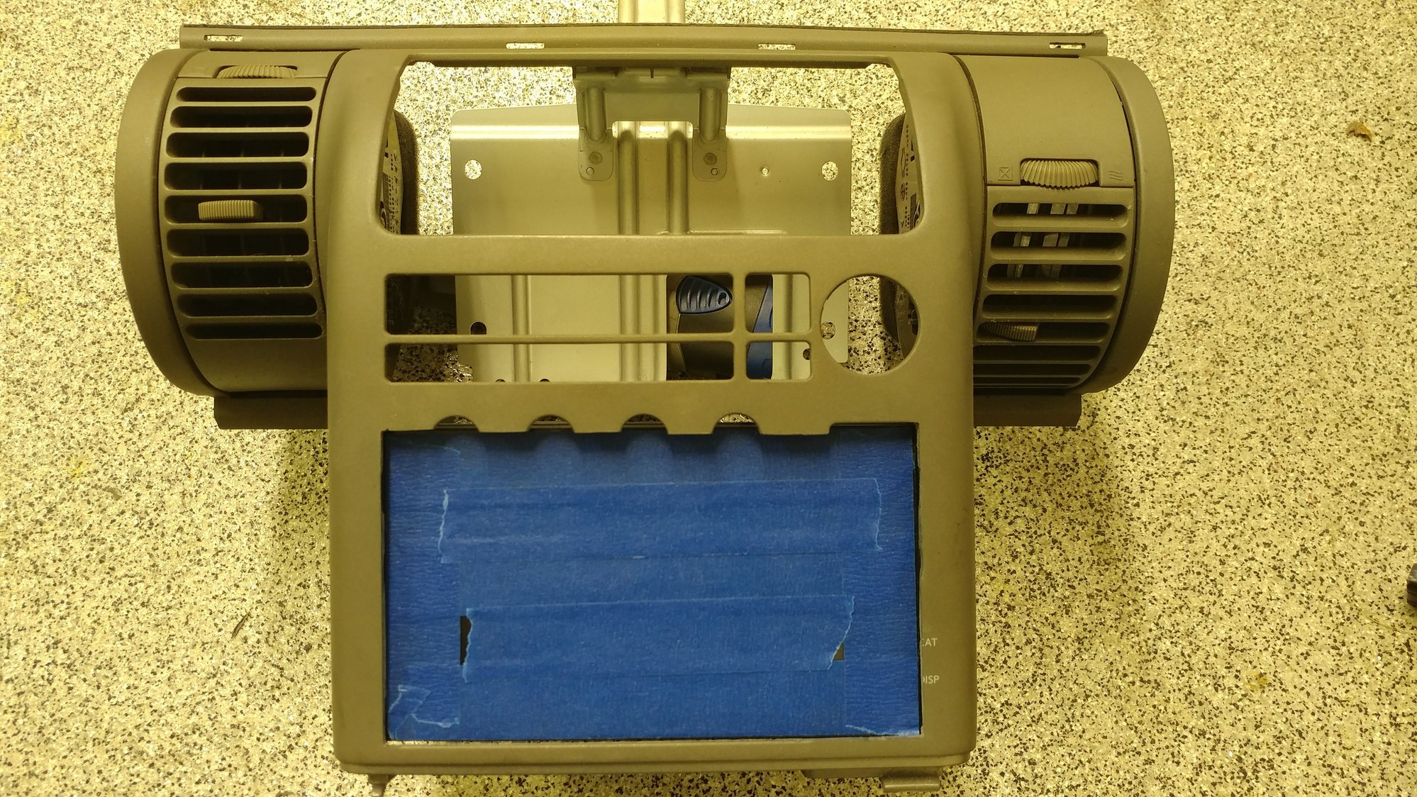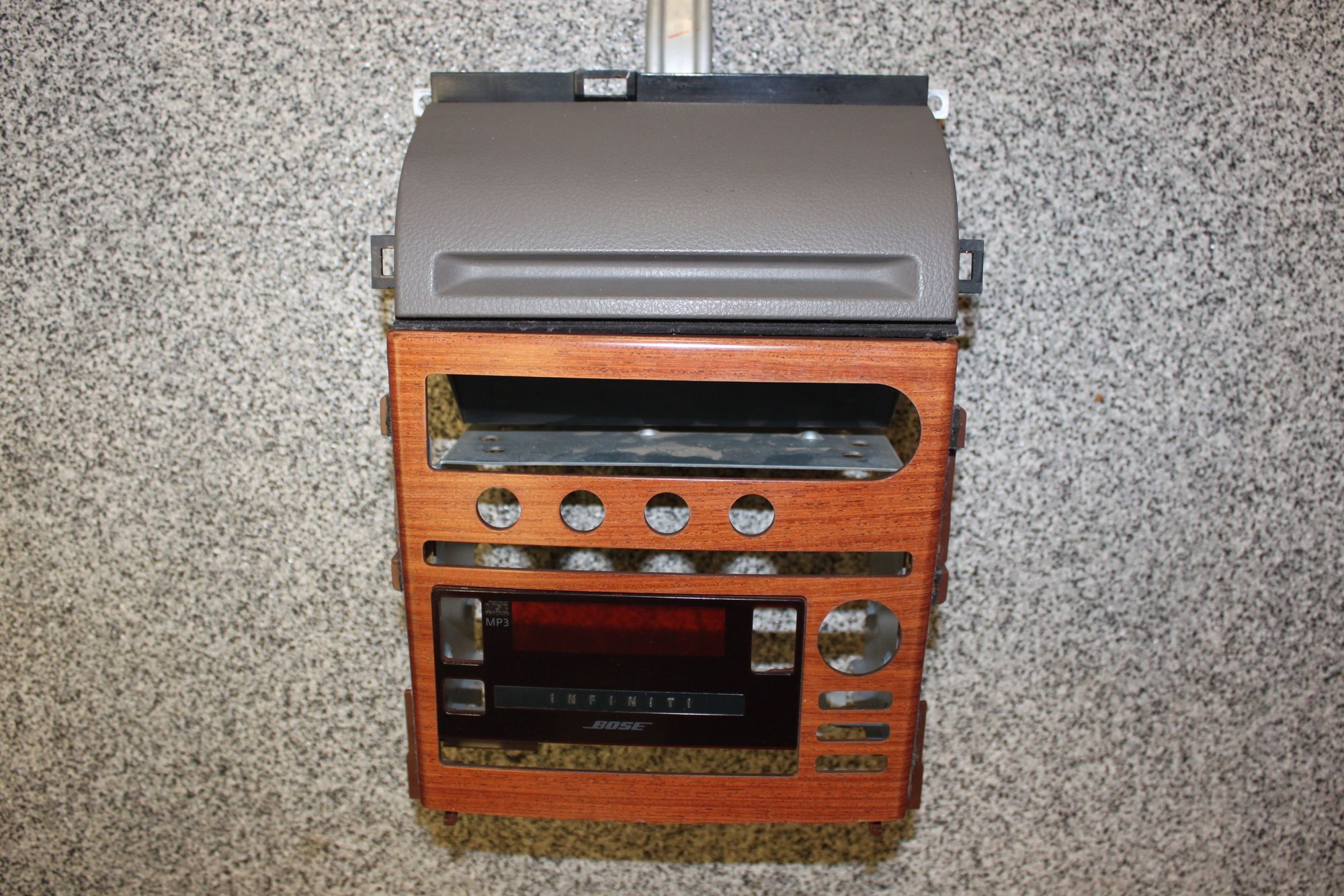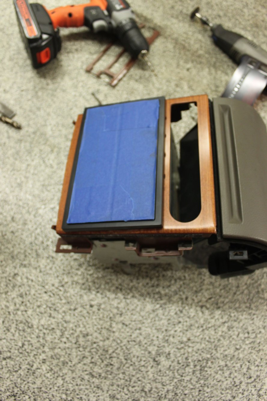 Front rosewood radio bezel is wrapped aluminum over plastic. It is extremely hard to cut with a dremel, I used a 4 1/2" angle grinder. I had to be careful when cutting it so the metal didn't get too hot and destroy the rosewood overlay.