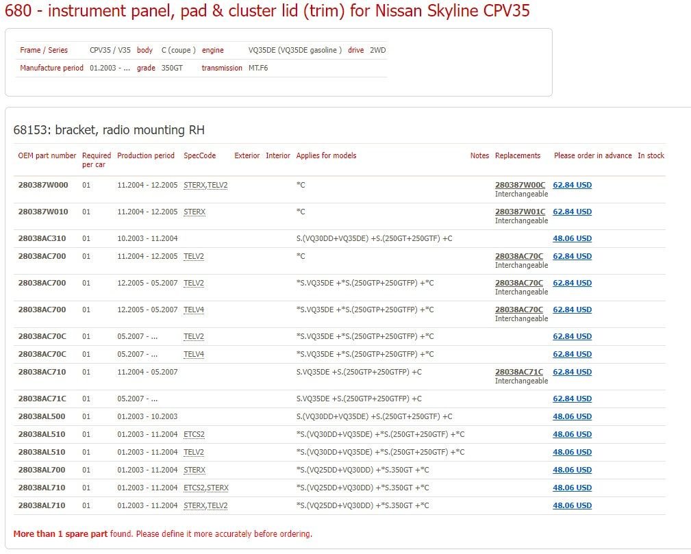 I don't know. It looks there are several part numbers since the V35 Skylines had more radio options than the G35. I'm not sure if the nav made a difference too.