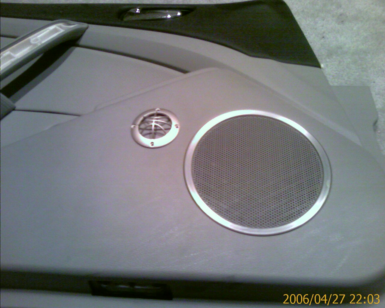 Here's a pic of his 2nd set of tweets installed by the kick panel. I really can't tell how he did it. It looks like a little pod that's been trimmed to fit the contours of the kicks.