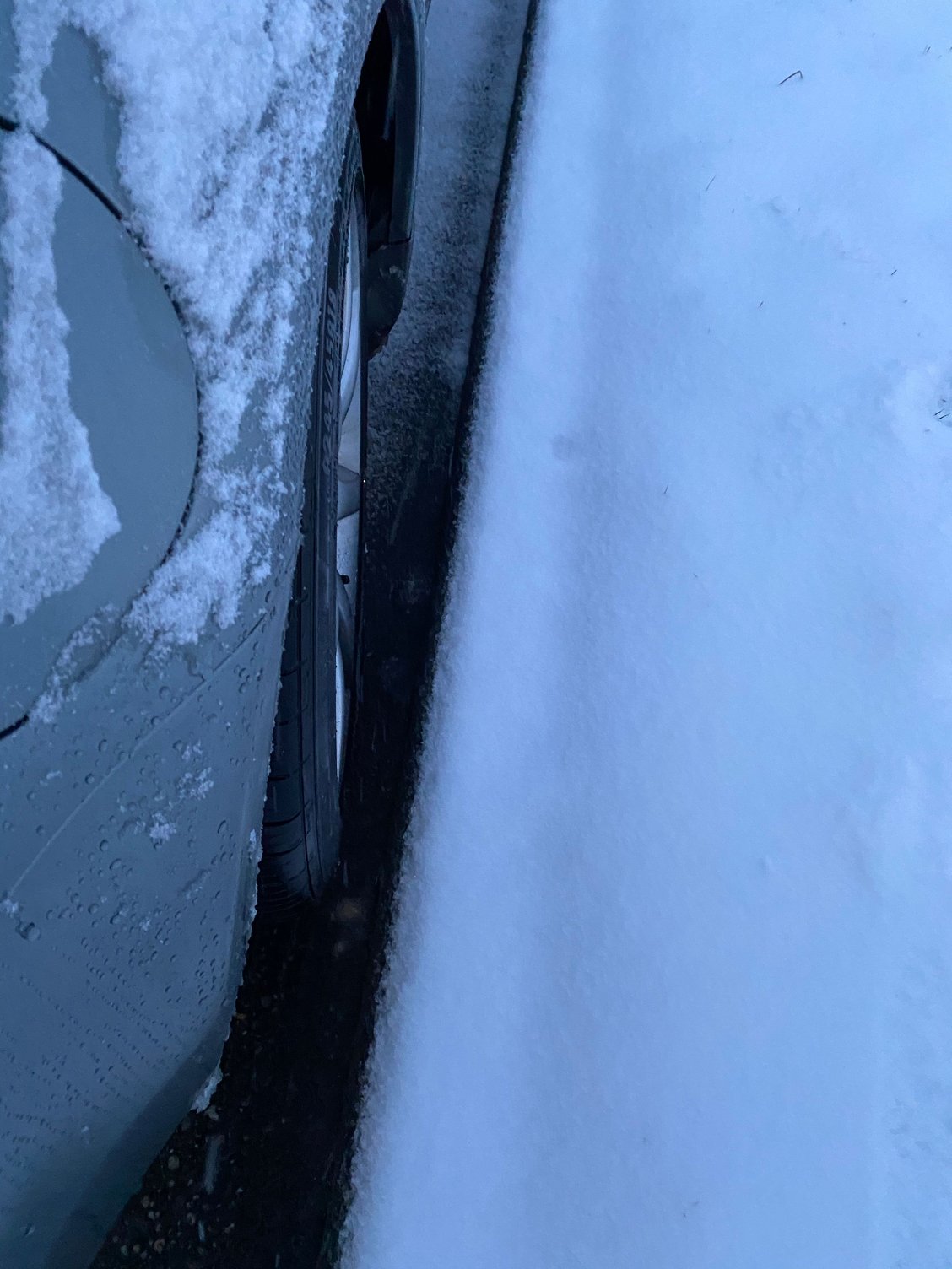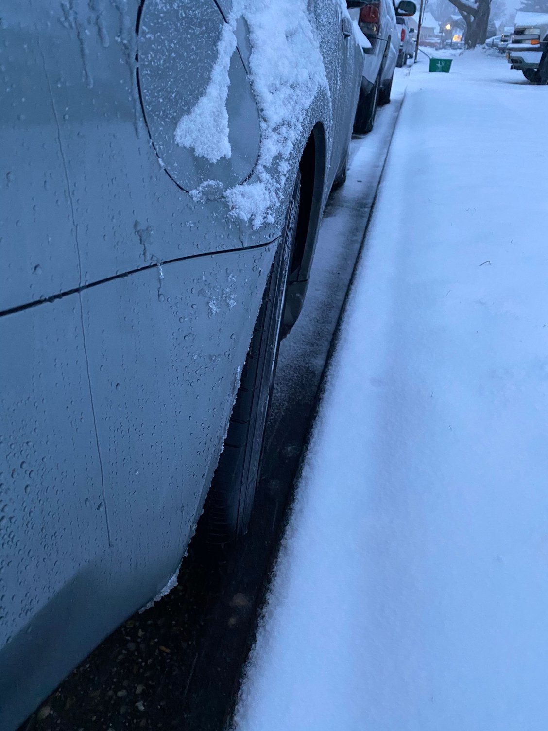 Lost traction in the snow spun and did a 180 and smacked a curb so lets play a game called guess whats fu*cked cant jack it up till the morning with all the snow so post your guesses and i will post the results in the morning! My guess is a control arm