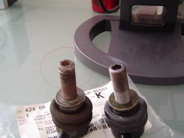 So yeah I ended up installing 3 out of 4 springs. On my 4th spring everything was going fine...positioned the spring/shock back into place and bolted it back to the lower control arm. As I'm going to re-connect the sway bar end link rod, I see the bolt has been damaged. It was from when i tried to pound it out of the hole, the threads got damaged. I tried to use a tap/die set to rethread the bolt, but it's been damaged to badly.