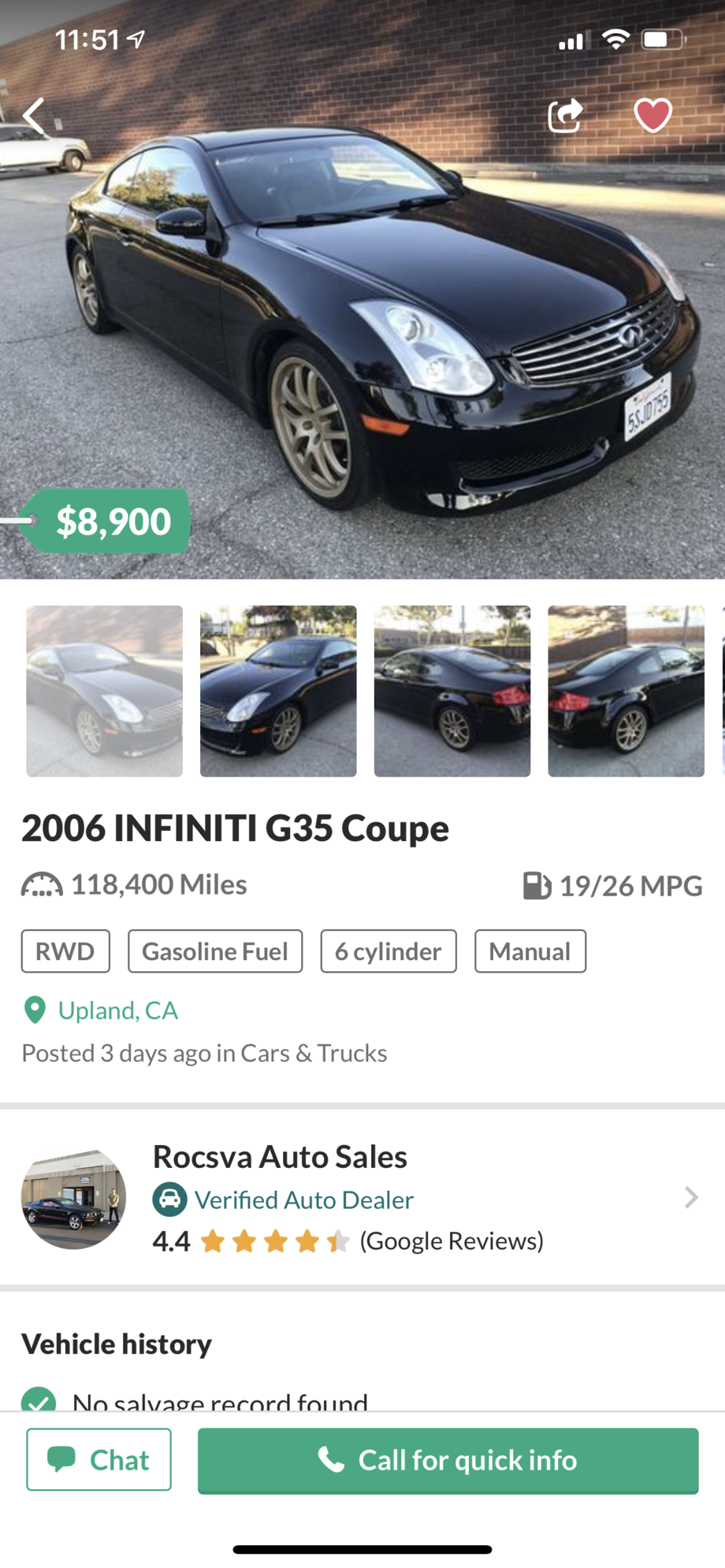 Just request the sale is contingent upon a complete inspection at a Infiniti dealer which you will pay for. They can run the VIN number for you and tell you what state and dealer the original purchase was made. They can also tell you the service history and whether any recalls were completed.