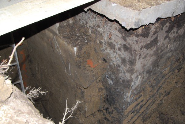 i had a crew come in and try to seal the thing from the outside. absolutely tore apart my landscaping but was hoping that this was the best course of action. as they dug in... i found out that an outer retaining wall wasn't completed at all!! the guy started one side and then just gave up. u can actually see it in one of the pics. other findings showed that nothing was properly sealed... and the surrounding weeping tile (where it was actually found and in place!) was installed above the footing... instead of below it!