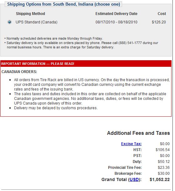 A few years back when traveling near south bend we made a slight detour and picked up a new set of tires from tire rack and got a very good price on them. Too bad they were not closer to where I live because they are the best in tires. Unfortunately the shipping costs to Calgary Canada do make them more expensive than the same tire bought and mounted at Costco. Costco also includes fix flats and free rotation and the last set of tires I bought from tire rack I had a hard time finding someone that would mount them. OK TIRE wanted $360.00!
