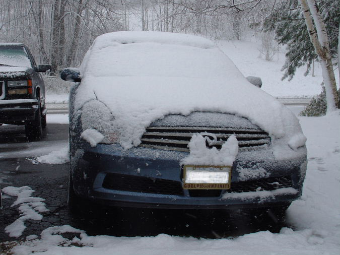 Our little skiff didn't put anything lasting on the ground. It was just weird to come out and see a bit on my car when I wasn't expecting it. It's been so warm the previous 3 weeks or so too.