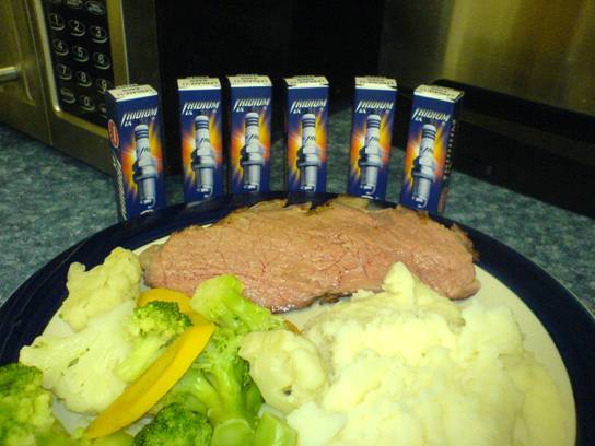 Installation: Remove Injen shorty intake, pop off throttle body and clean (it was pretty dirty). Take out spark plug #6. Notice gap appeared large. Go in the house and take out gap gauge and notice gap is 0.075 (all subsequent plugs were around this gap). Eat more turkey noodle soup. Install #6, and do #4 and #2. Reinstall all parts and nuts and bolts on driver side. Move onto passenger side and do all spark plugs on this side. One hint to get #5 coil out, put 10mm on extension and put on harness bolt and leverage wires out of the way. I was having some problems with #3 and #1 until I snapped off the plastic piece routing wires around these two plugs. Install plugs and reinstall all hoses, nuts and bolts. In between each plug I made sure to check rib roast, and at one point I placed remaining soup in the refrigerator. I also did not detach the wiring to the coil as there was enough play in the wiring.