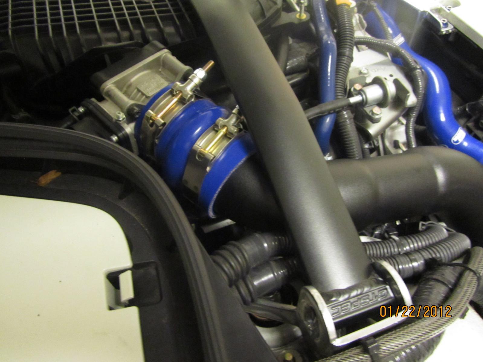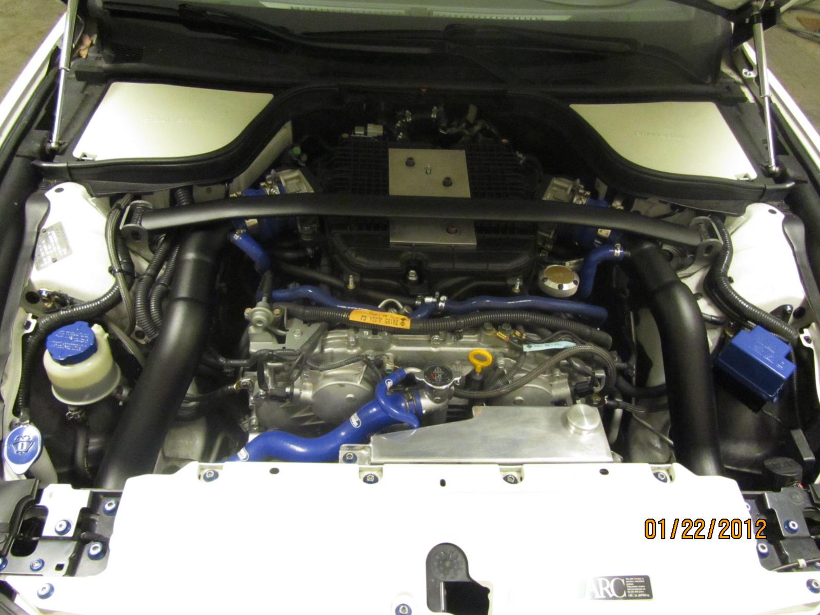 Now I am moving on to the issue of nozzle placement ... Not a whole lot of room for Meth and N20 nozzles .. One of things that sucks about my Takeda intakes is the lack of room between the throttle and MAF sensor.. Pics are to show what I am up against .. The engine cover and strut bar will be on when I am done .. Strut is there for Nozzle placement ....