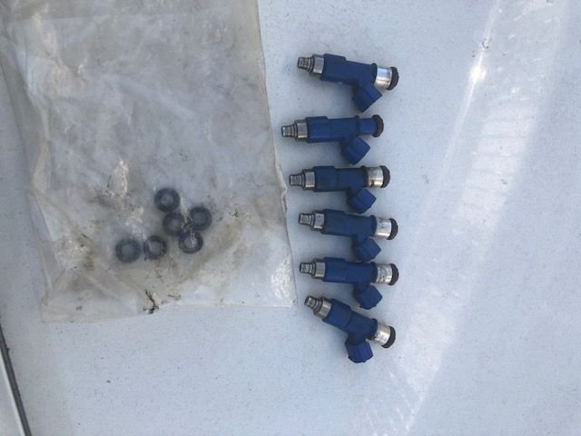 6 Deatschwerks / Denso fuel injectors. I believe it's 900cc . ( On my old set up 93 octane 7-8psi on the stock block made 440whp with these) Make an offer.