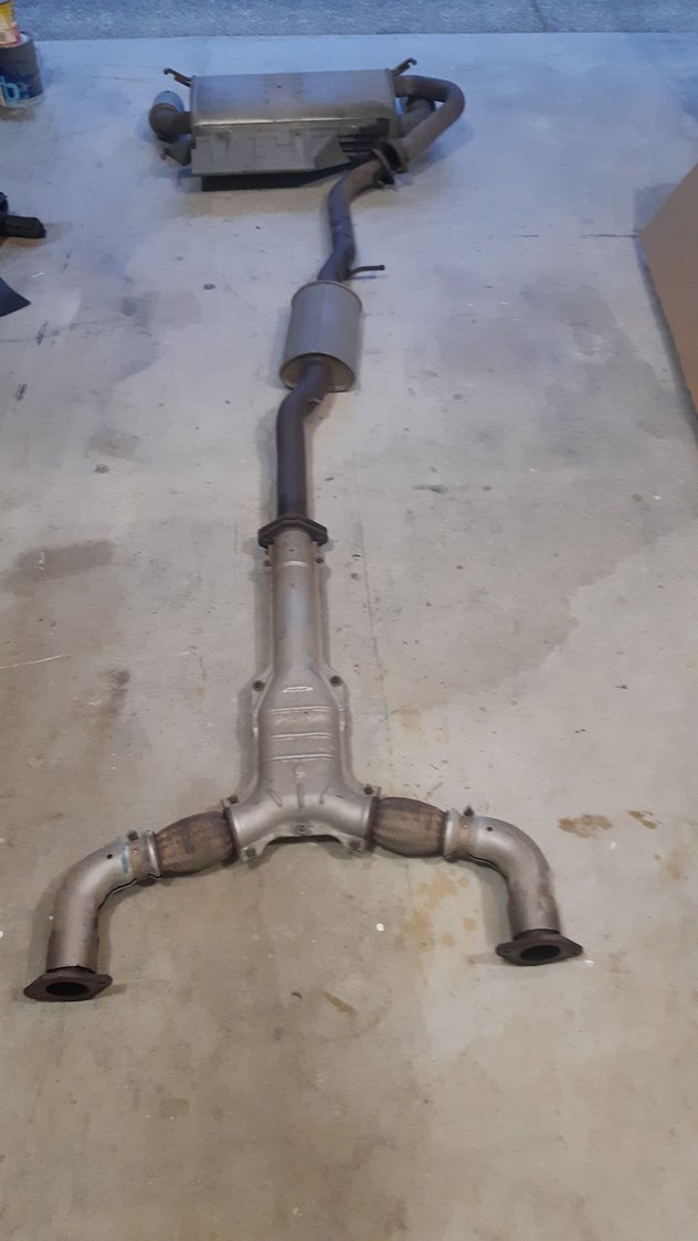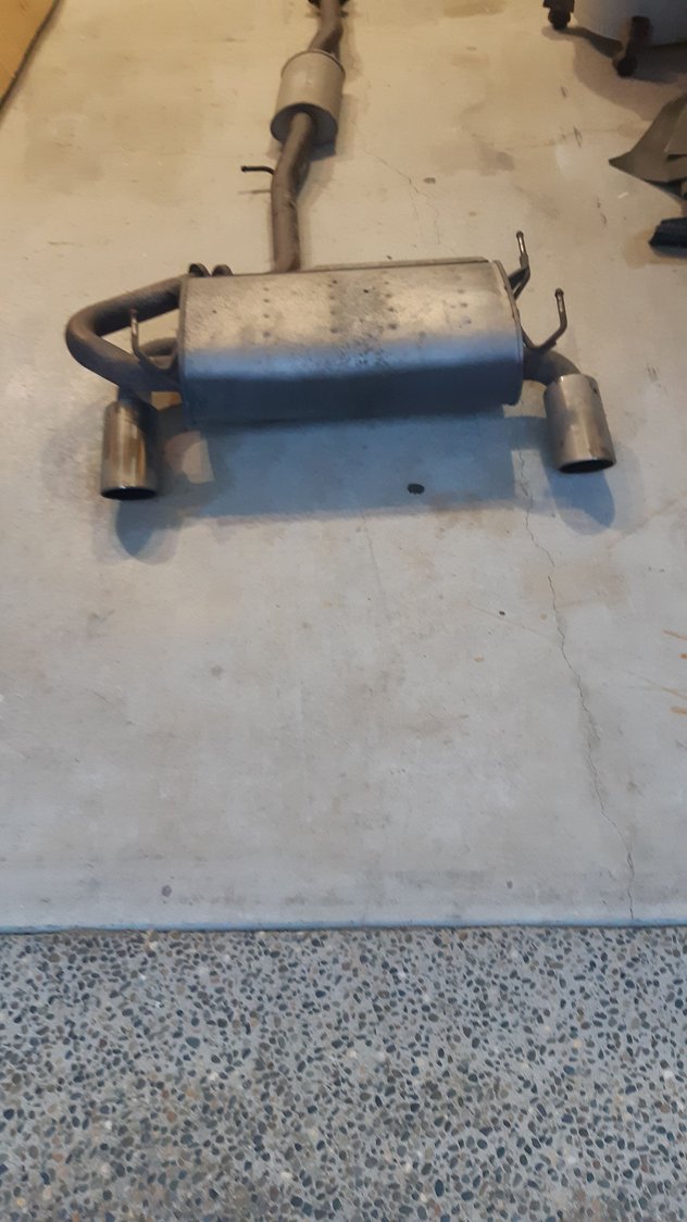 Complete STOCK Cat Back Exhaust system for 2006 Infiniti G35 coupe (has 85000 km on it). Single muffler with dual exits...may fit earlier model years as well. in very good condition...some surface rust on the pipes but all still in very good shape. Includes y pipe, mid pipe and muffler, will ship at buyers expense. Asking $200.00 located in Surrey, B.C.