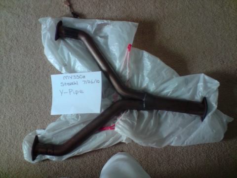 Alright guys, since no one can identify this y pipe, I am just going to put it up for sale. I am basing the price on the stock y pipe, so if you have any problems with that, i am truly sorry. Reasonable offers will be considered. This is a 2.5 inch outlet, and it worked nicely when I had a single with it. Originally for my 350z, but like the hr stock y pipe, should fit the g's.