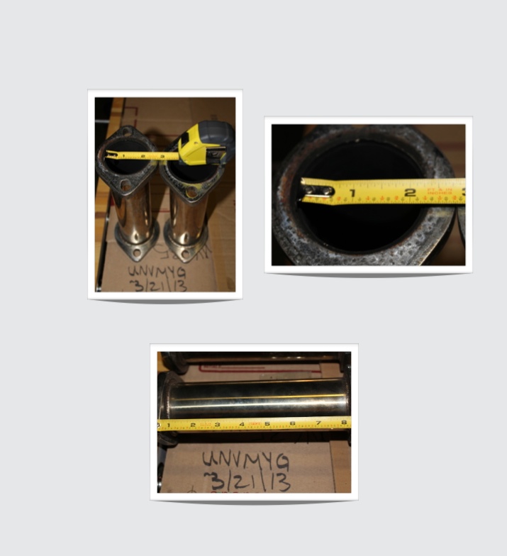 I have a set of extension for G35 aftermarket exhausts. This came off Ark Grip V2 TD exhaust. There are 2.25 diameter and 8.75" long. Should be able to use with other exhausts, but please check your measurements.