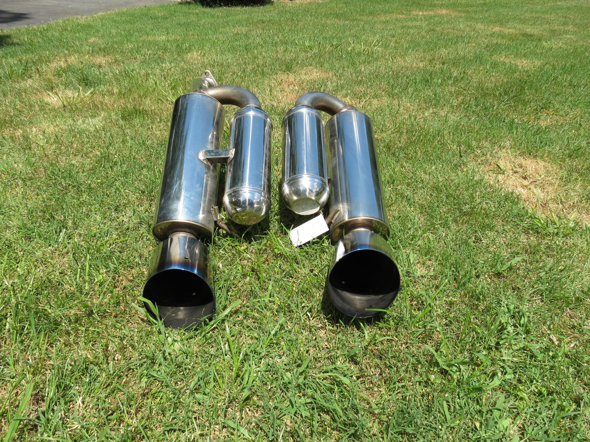 I was pretty picky with my Z, as I took it to local car shows often. I recently ordered another pair of titanium tips from HKS Japan, so these are in great condition with just one minor scuff on the bottom of one tip -- nothing you can see when installed, unless underneath the car. I would frequently polish the canisters so they would be sure to shine. They show well with just a few minor scuffs not really noticeable.