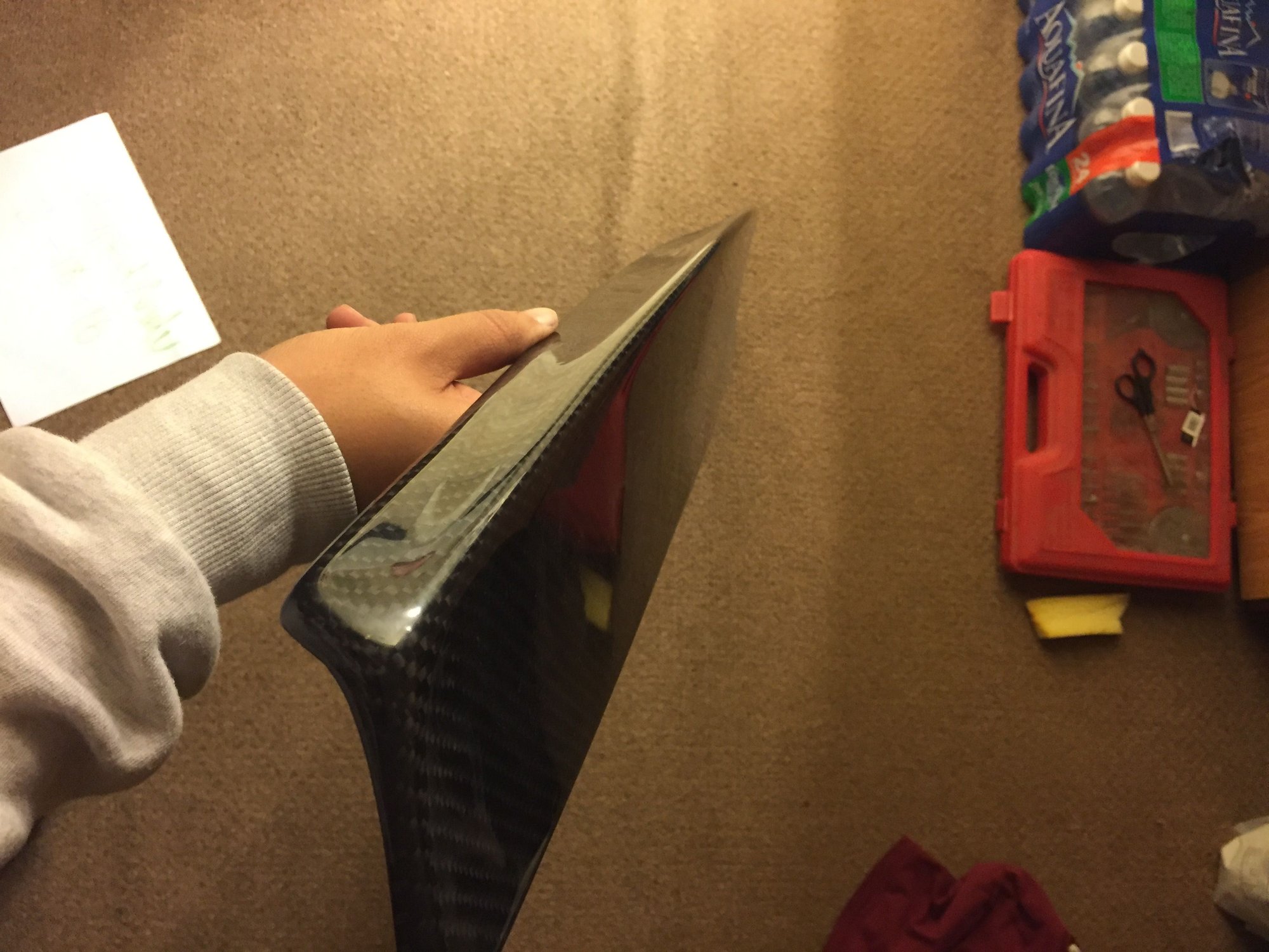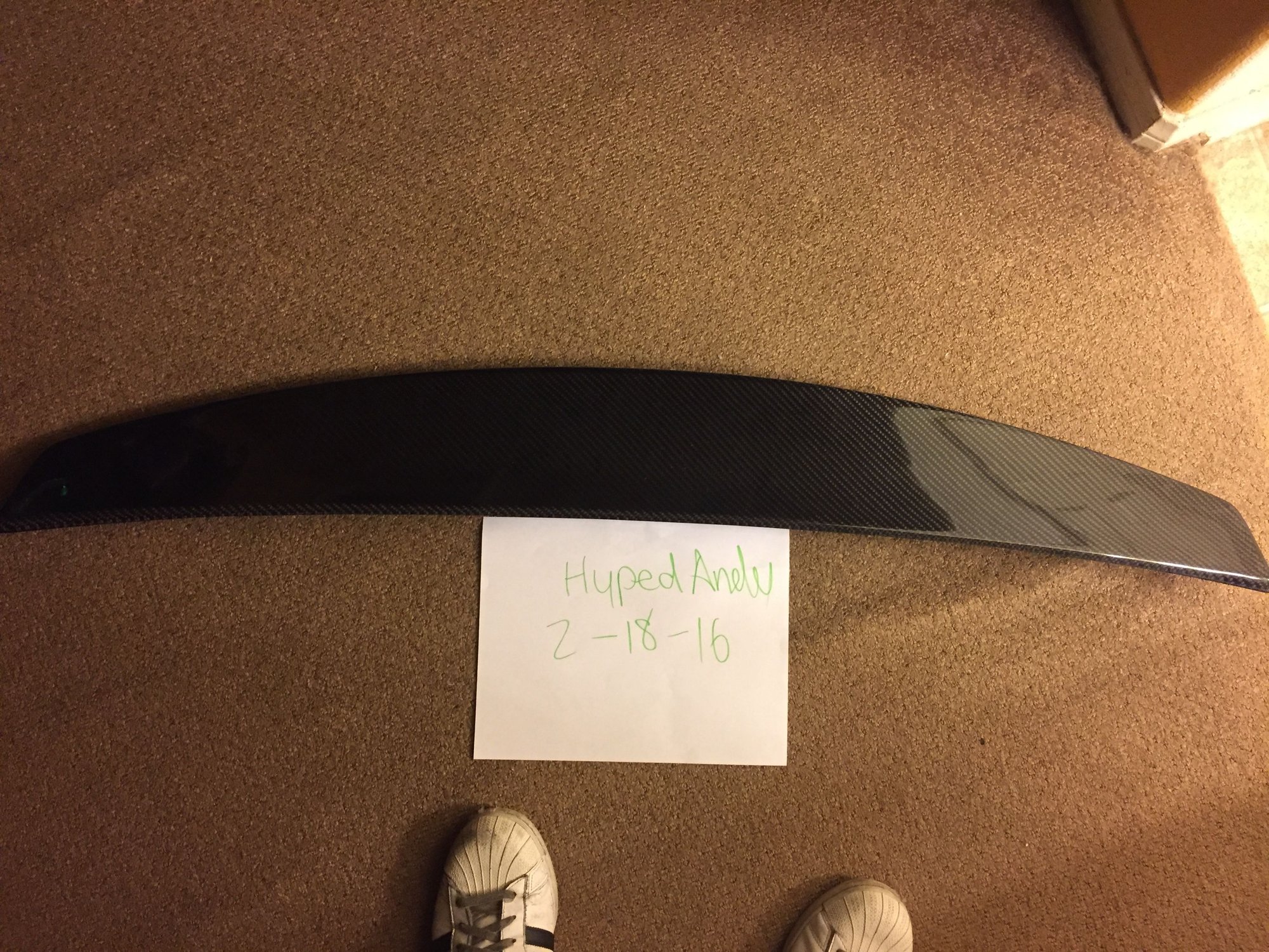 Had to sell the car so I took the spoiler off, used for less than a month! the spoiler is in like new conditions, clear coat on the cf is like new! no scratches no chips.