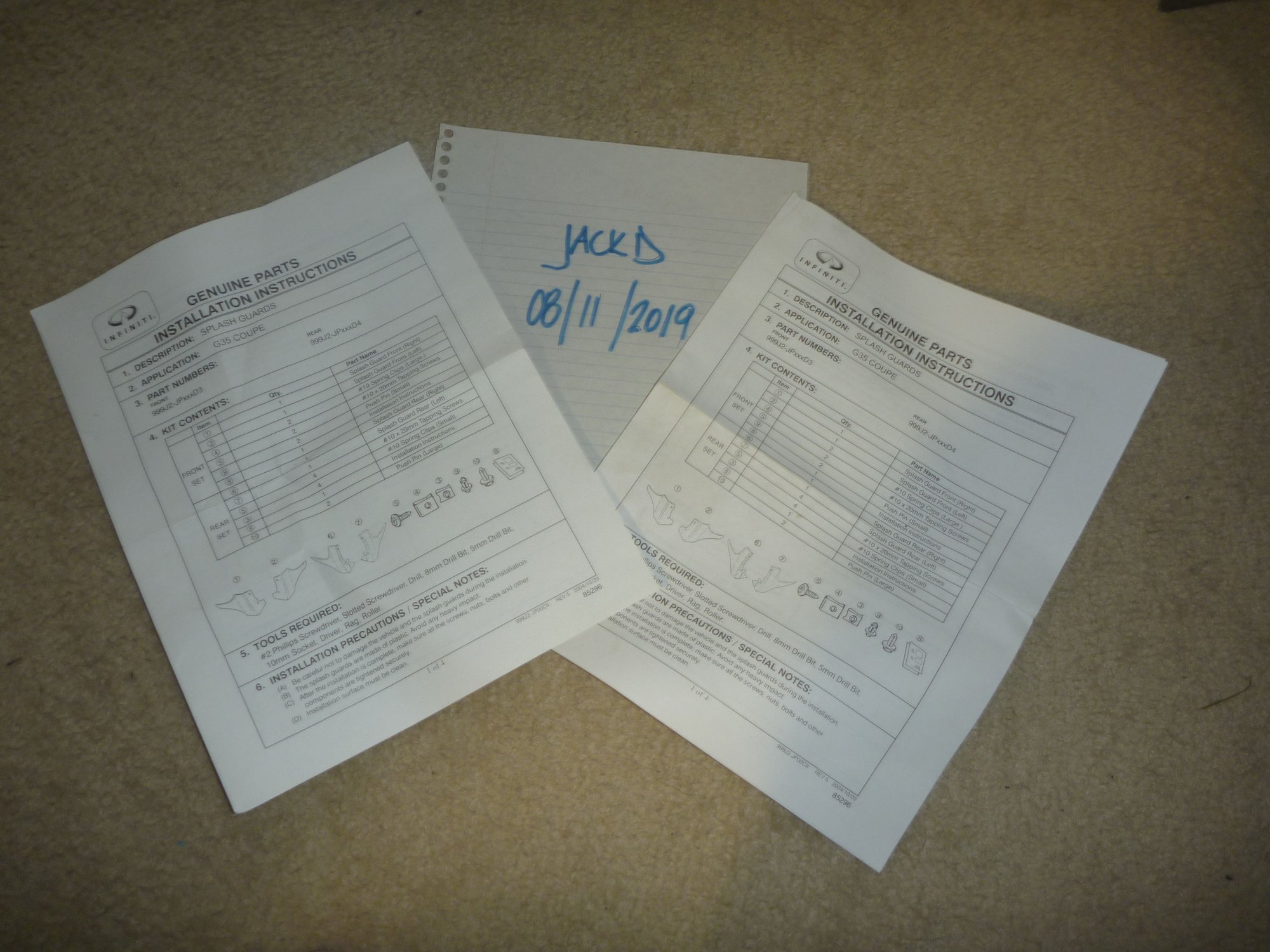 Brand new in original packaging OEM Splash Guards for 2007 G35. Factory painted to match Diamond graphite 07 G35. Might fit other year model. Set of font and back splash guards