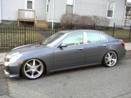 Also - Here is a picture of my car, not the best quality sorry about that. Sitting on Tein basic coilovers with 20x9.5 - 20x10.5 Staggered MK rims - Fenders rolled and widened