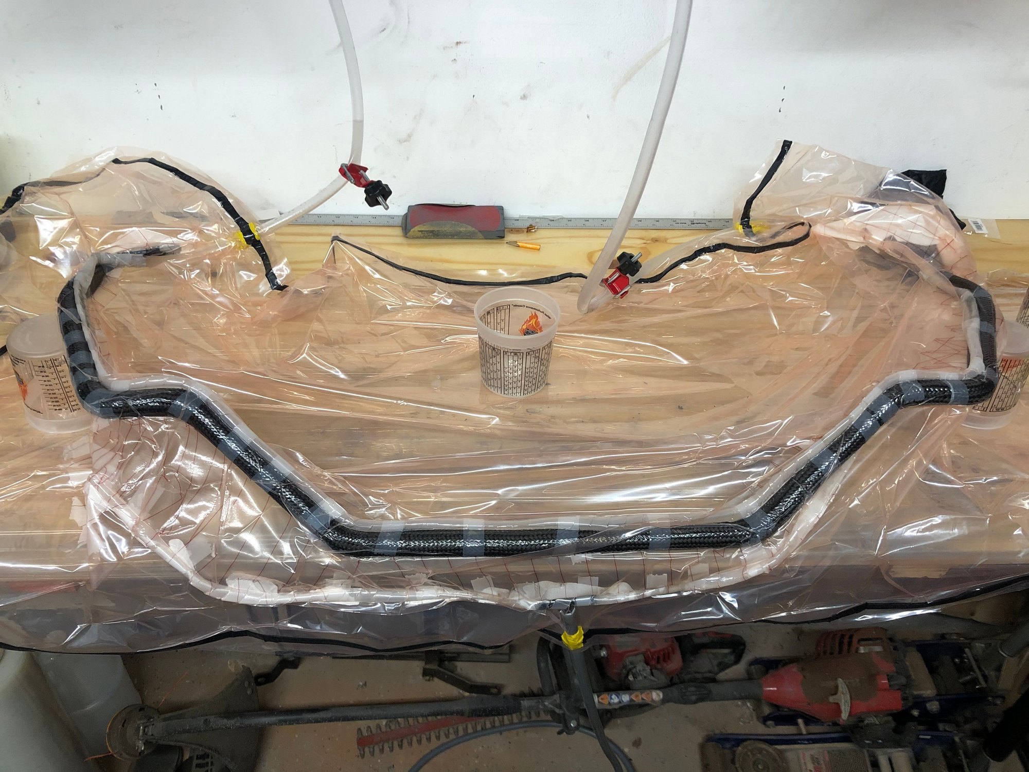 I got some more work done on the CF sway bar with a few more layers of CF sleeve applied, almost ready for another infusion, just need to bag it and go. Maybe Ill even bang it out tonight.