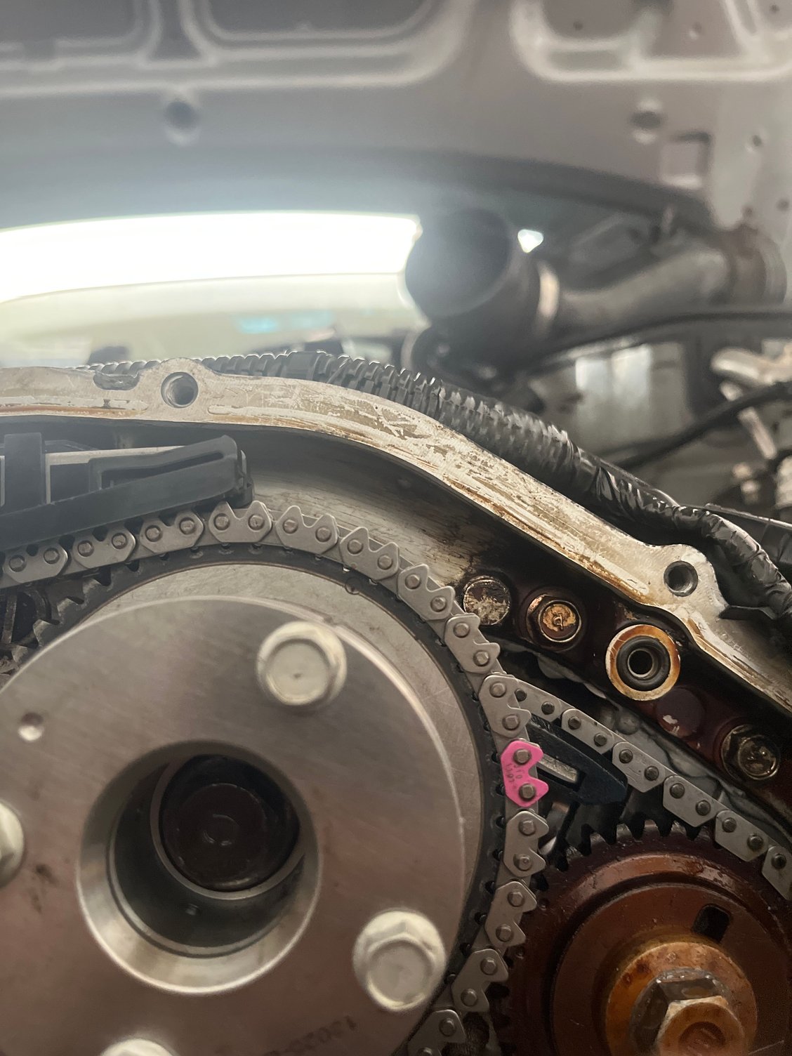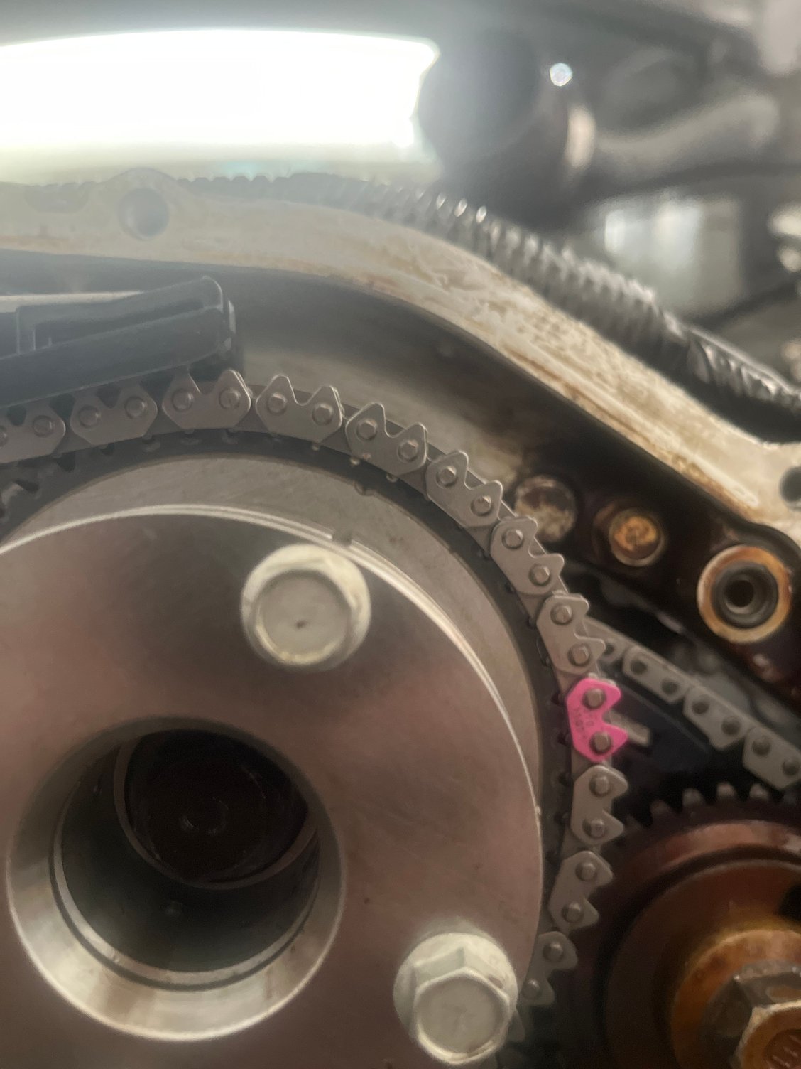 I replaced the whole timing kit, cam gears, guides, sec. And primary tensioner, secondary chains and primary chains thought I had everything lined up and torqued everything down and pulled the pin on the tensioner’s and started turning the crankshaft, but turns out bank 1 cam gear is out of line by a little bit how would I put it back in time?