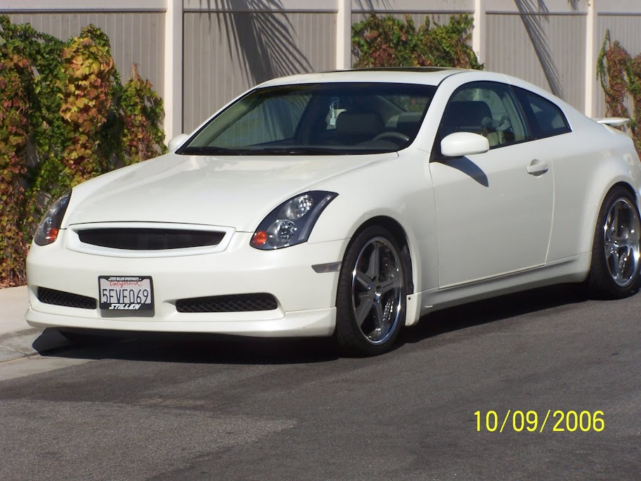 2004 G35 coupe White(IP) with willow leather, loaded w/ everything but NAV.