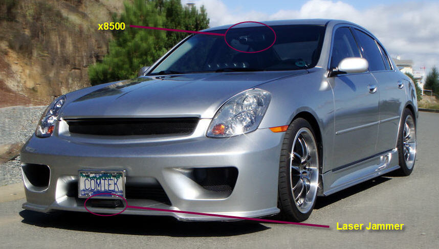 I have an x8500 hardwired in front of the mirror with a LED in the display where the A/C display is. I also have a laser jammer mounted under the license plate with remote switches for both close at hand.