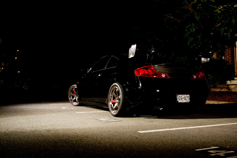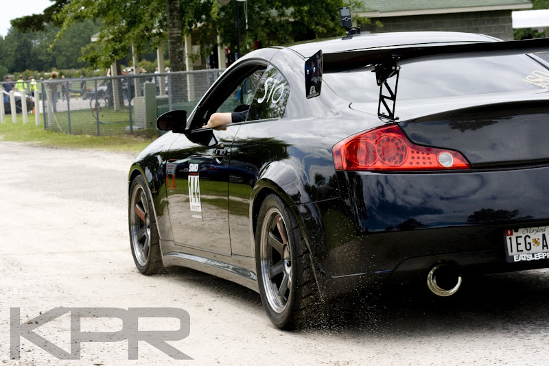 Since we wanted to build the fastest Time Attack G35 on the planet we decided to retain the use of the base platform for the G35 especially the VQ35DE RevUp engine, which would provide the perfect power curve for time attack especially when we added some boost. Along with the fully built VQ we added a Momentum Performance GT35R Turbo kit to add more power and get us up to the 600hp / 600tq we wanted. Keeping all of the power planted we chose KW ClubSport coilovers and SPL suspension components to keep the car balanced at all times.