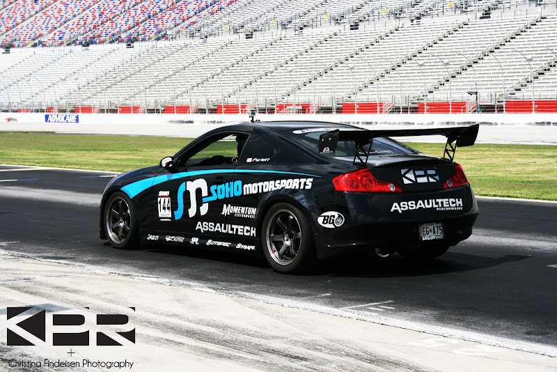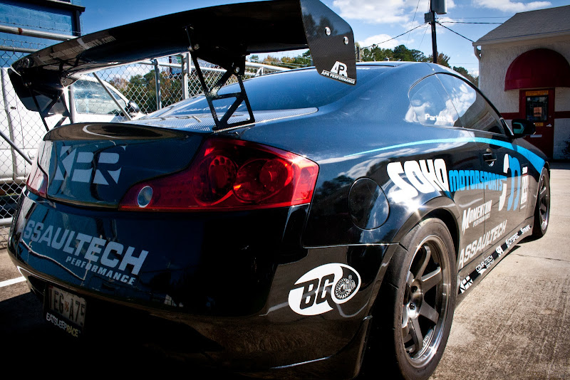 After opening in 2009 we chose to use one of our shop cars, Kevin Parlett's 2005 Infiniti G35, as a platform to build a car that would not only represent the SOHO Motorsports ideology of perfection and performance, but also create a car that can compere in any Time Attack series and win anywhere. We knew we would have to create a monster to get the car we imagined in our heads. After many long nights, when it was all said and done, we even surprised ourselves.. The end result is a Frankenstein Batmobile thats half Infiniti and half NASCAR.