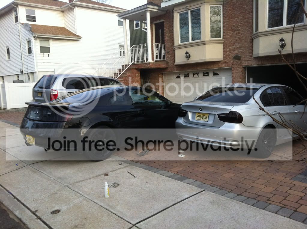 my g with the black rims, smoked lights, and my buddys bmw ( i did his lights