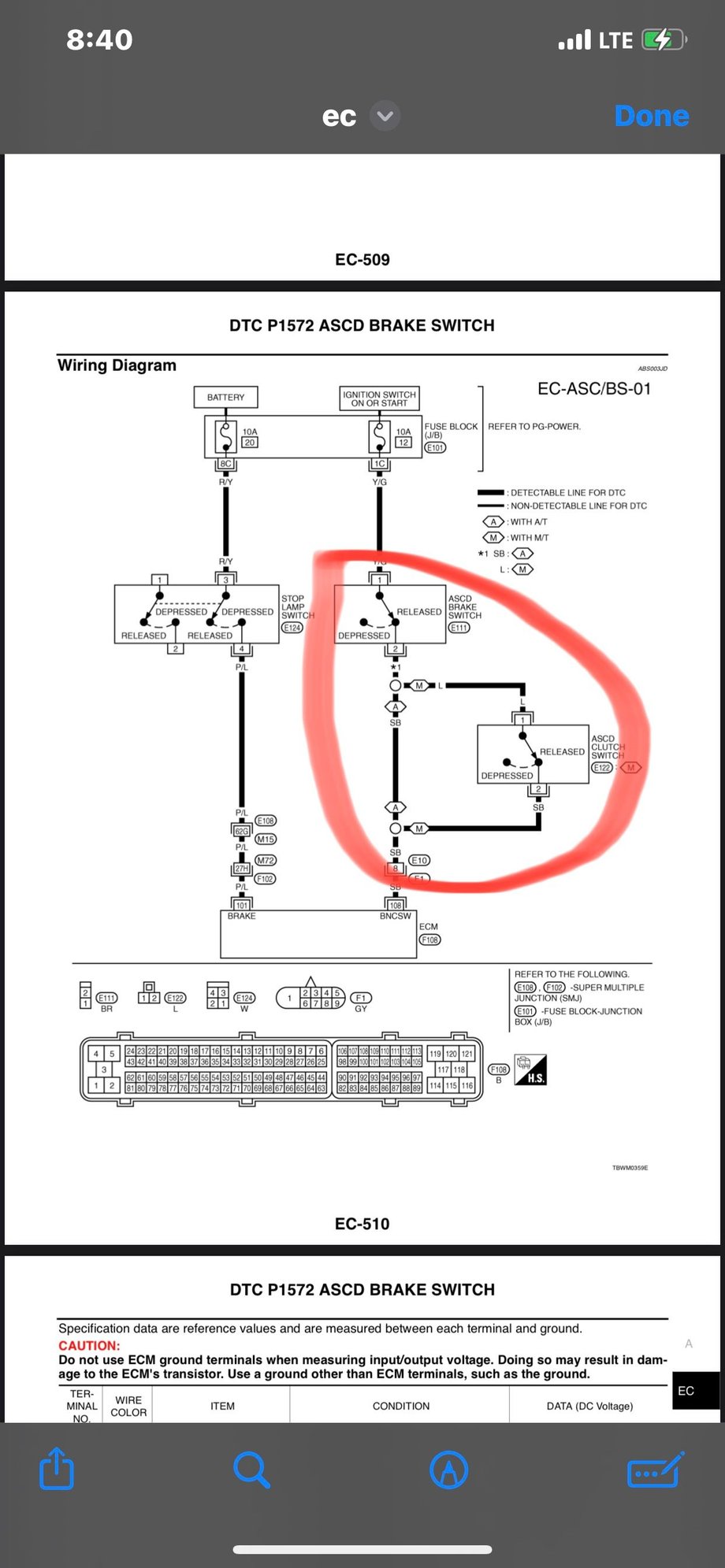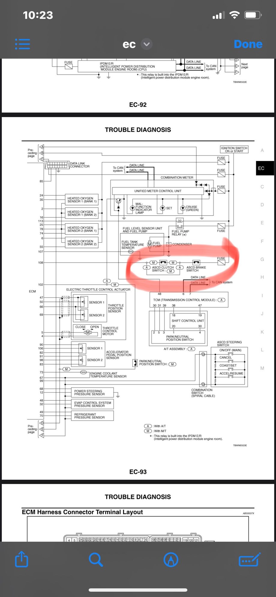 6MT power goes through the brake pedal ASCD switch, then to the one on the clutch pedal, then to the ECM. This way touching either pedal will kill the cruise control.