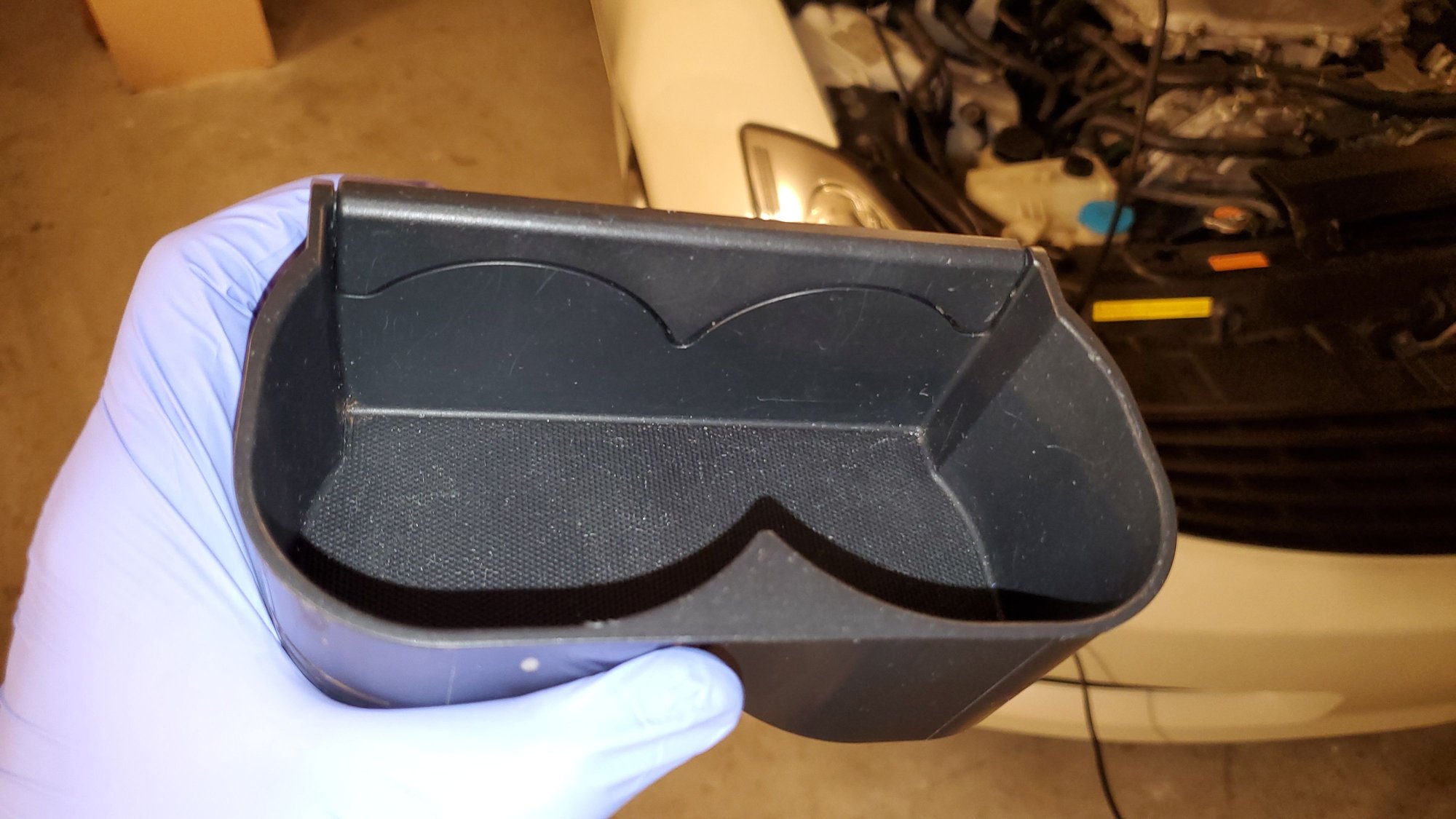 I shouldnt mention this but SEM paints! hahaa... I just painted my window Cowl with black trim, did the whole battery plastic pieces while I had the cowl off the car. Minus well. Next up is resrpraying the inside of the car. Got the black SCOOSCHE double din kit but the black made the car to dark inside. So I got some Titanium Metallic for the center pieces. Just the little bit I sprayed looks freaking hot! And off the assembly line amazing. That paint is so easy to work with. It lays perfectly flat. Anyway, that cup holder you have in your hand is to be painted black so it looks like new. Throw on 2 or 3 coats of SEM and a couple coats of clear coat and it will look like the day you pulled out of the showroom. Can't wait to get it all done.