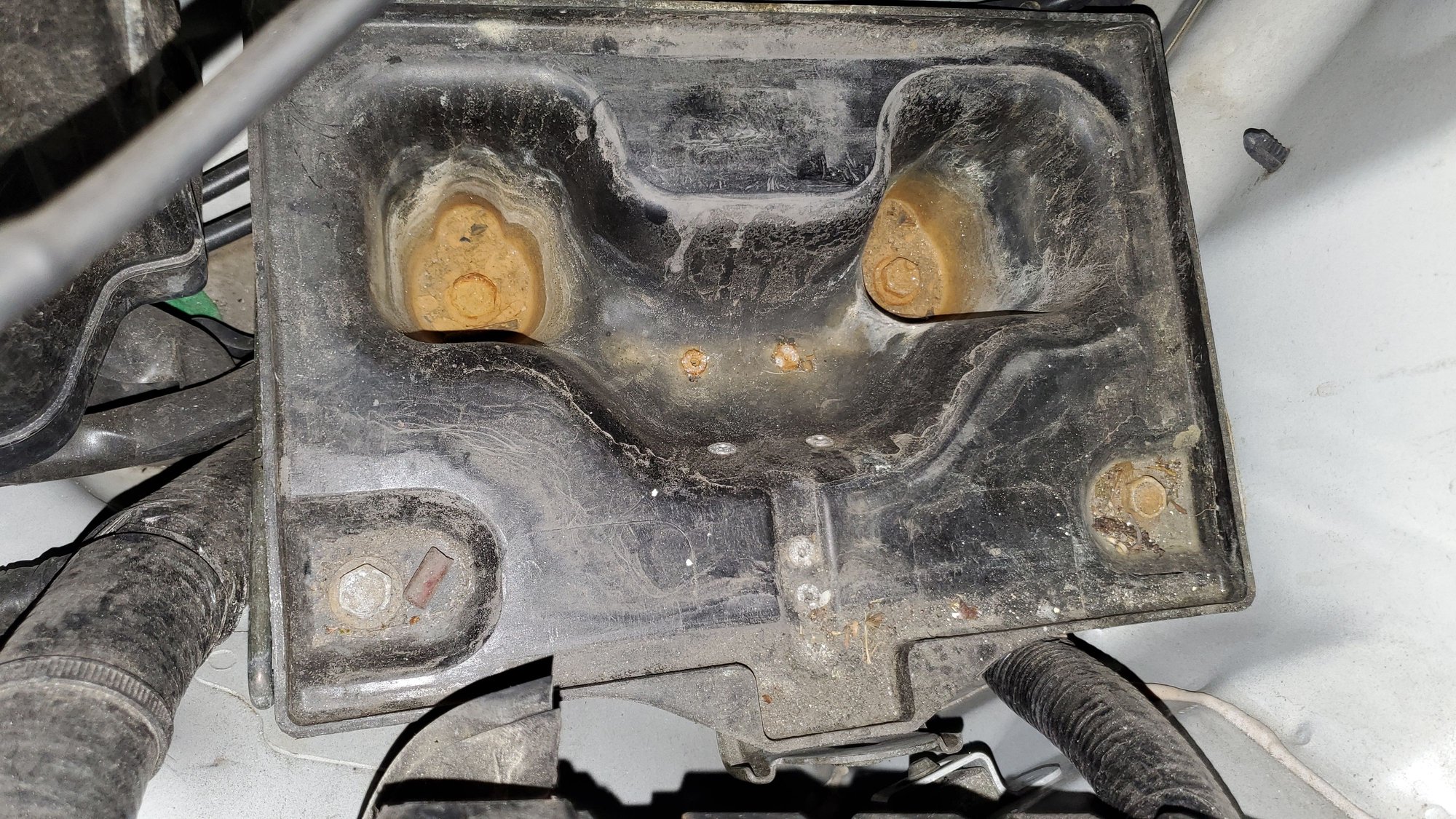 Just a tip: Drill some small holes in the lowest parts of your battery tray to prevent water from collecting there and rusting the bolts away. Gotta drill at an angle though. If u drill straight down u will go thru the metal underneath.