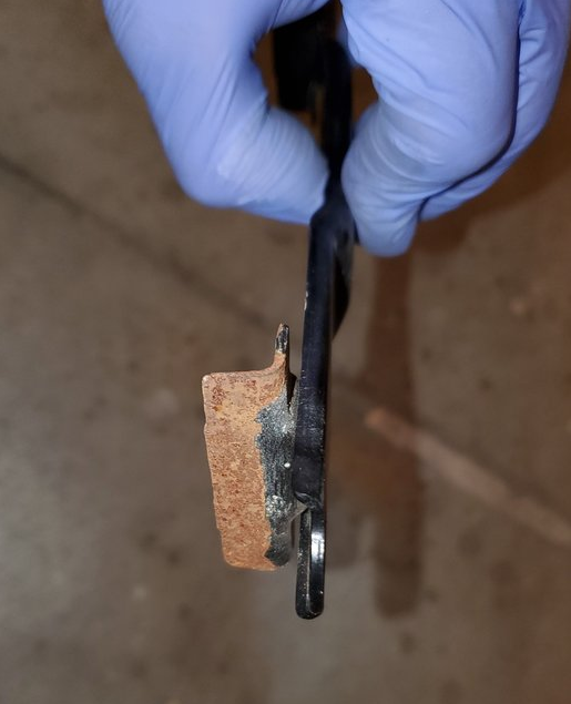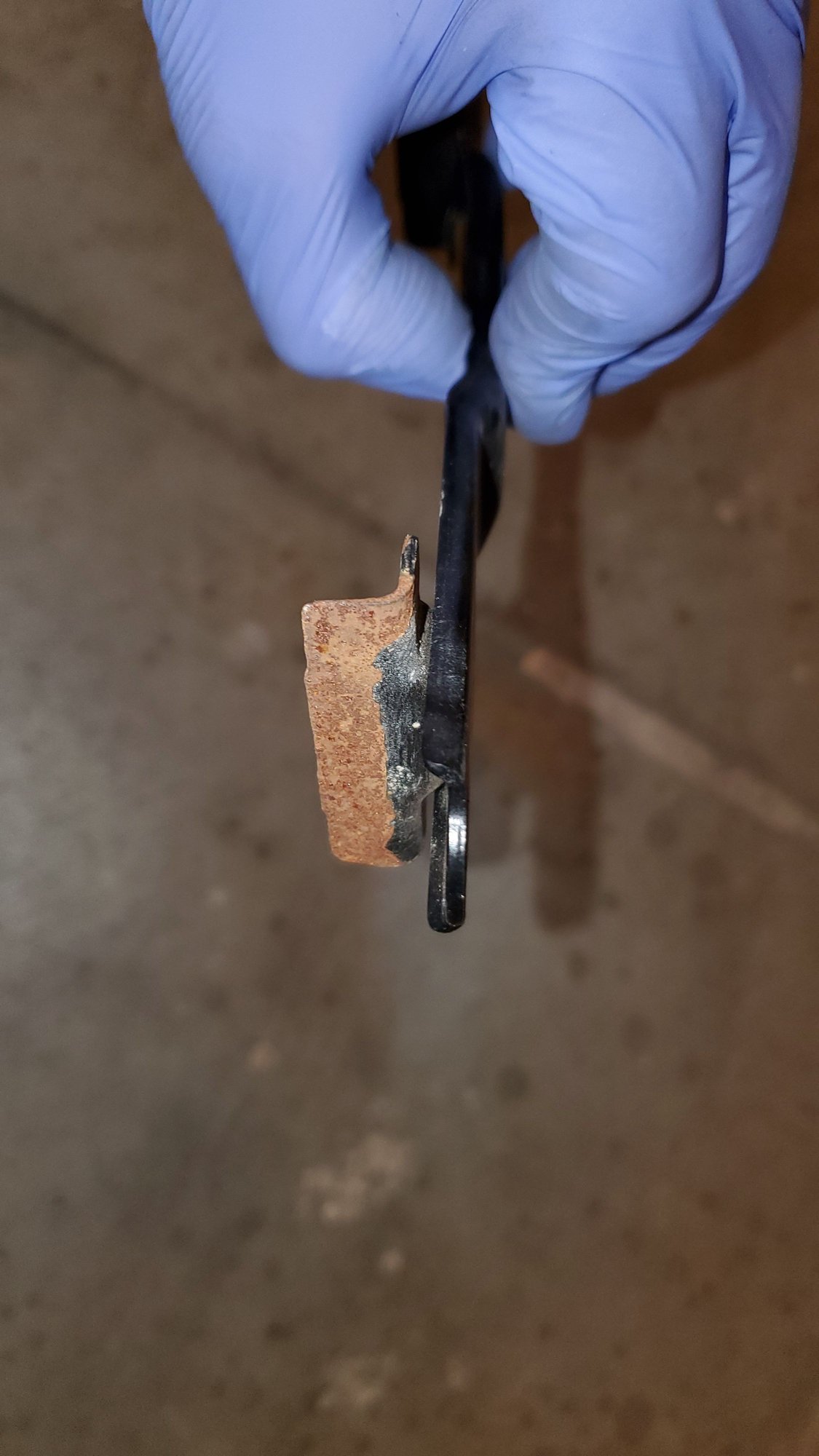 Battery bracket started to rust. Whoever installed the last battery didn't tie it down, they dropped the screws and J hooks into the bay and didn't bother getting them out. The battery has been just hanging out unsupervised in the bay, I was happy to at least find the bracket and the hooks in there. This is probably how the bracket rusted, sitting down there with some water and battery juices.