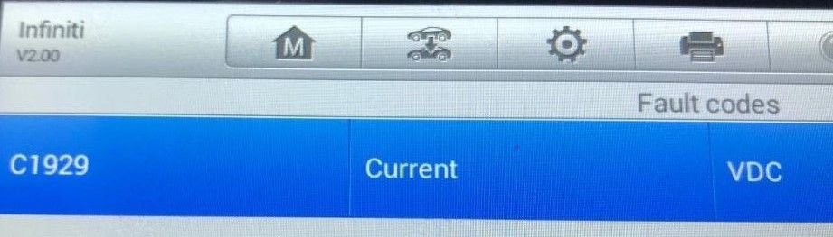 C1929 - VDC/ABS system malfunction. This can be caused by the RAS system malfunctioning since RAS is technically part of the VDC system.