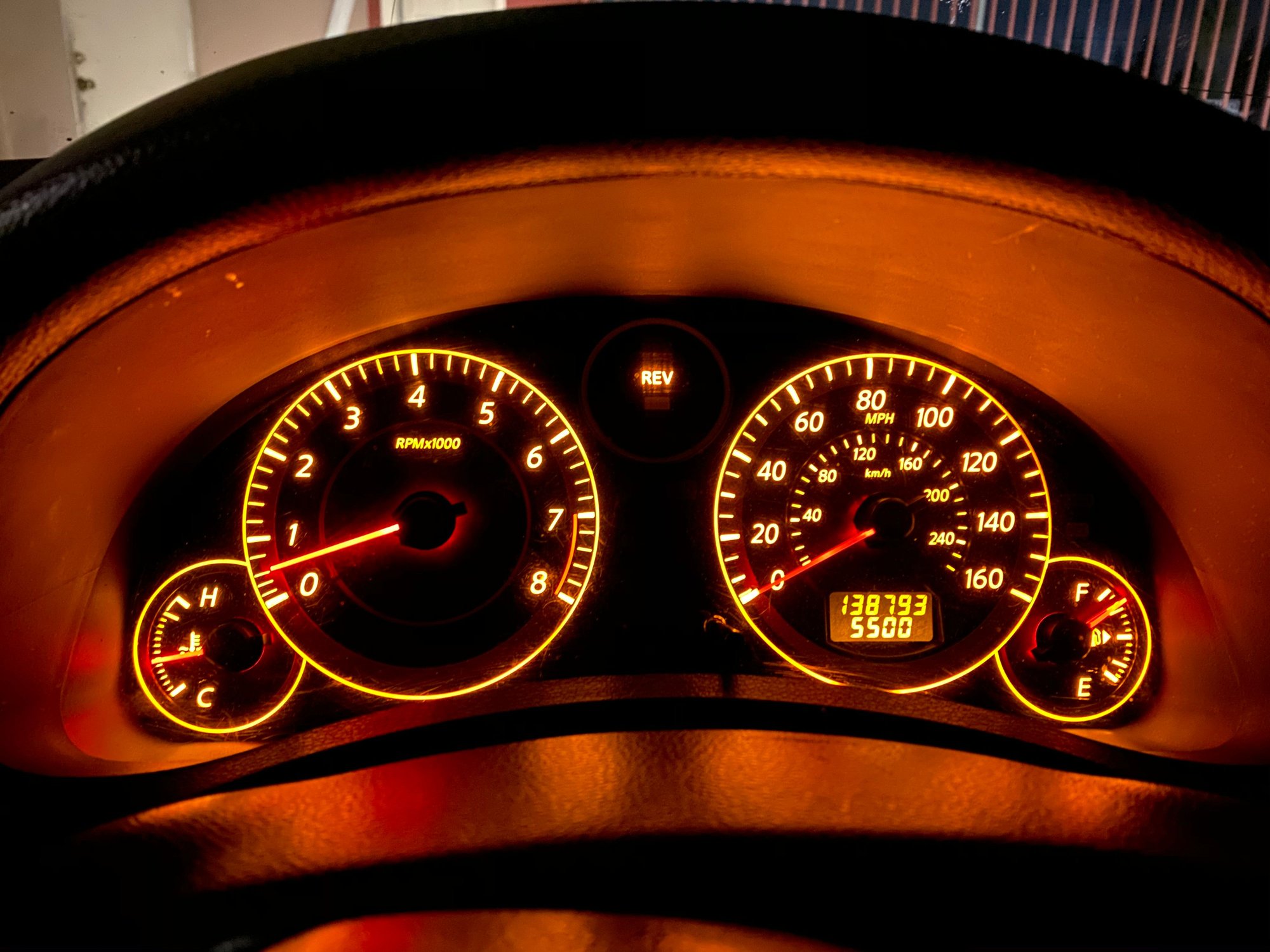 So I have an 06 G35 Coupe and have a spare cluster. I went to try and same down the orange like I have read one line about people doing but it looks like crud. Anyone have any links or idea on where I can either buy a different or custom gauge overlay? I’m about to change the leds to white but can’t figure out how to get rid of the orange so I can have white faces. Any help is appreciated in advance!