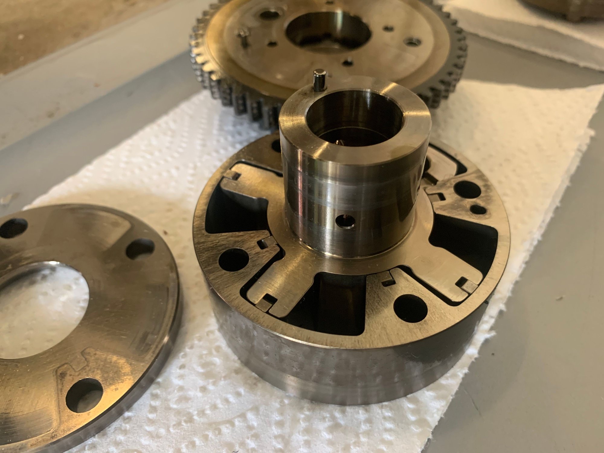 I took the cam phasers off and disassembled them. There appears to be no damage (cracks, broken bits,...etc). I checked the old ones and the new ones, they all look the same. I'm guessing it wasn't the cam phasers. Should I put the original ones back on or the new (used) ones?