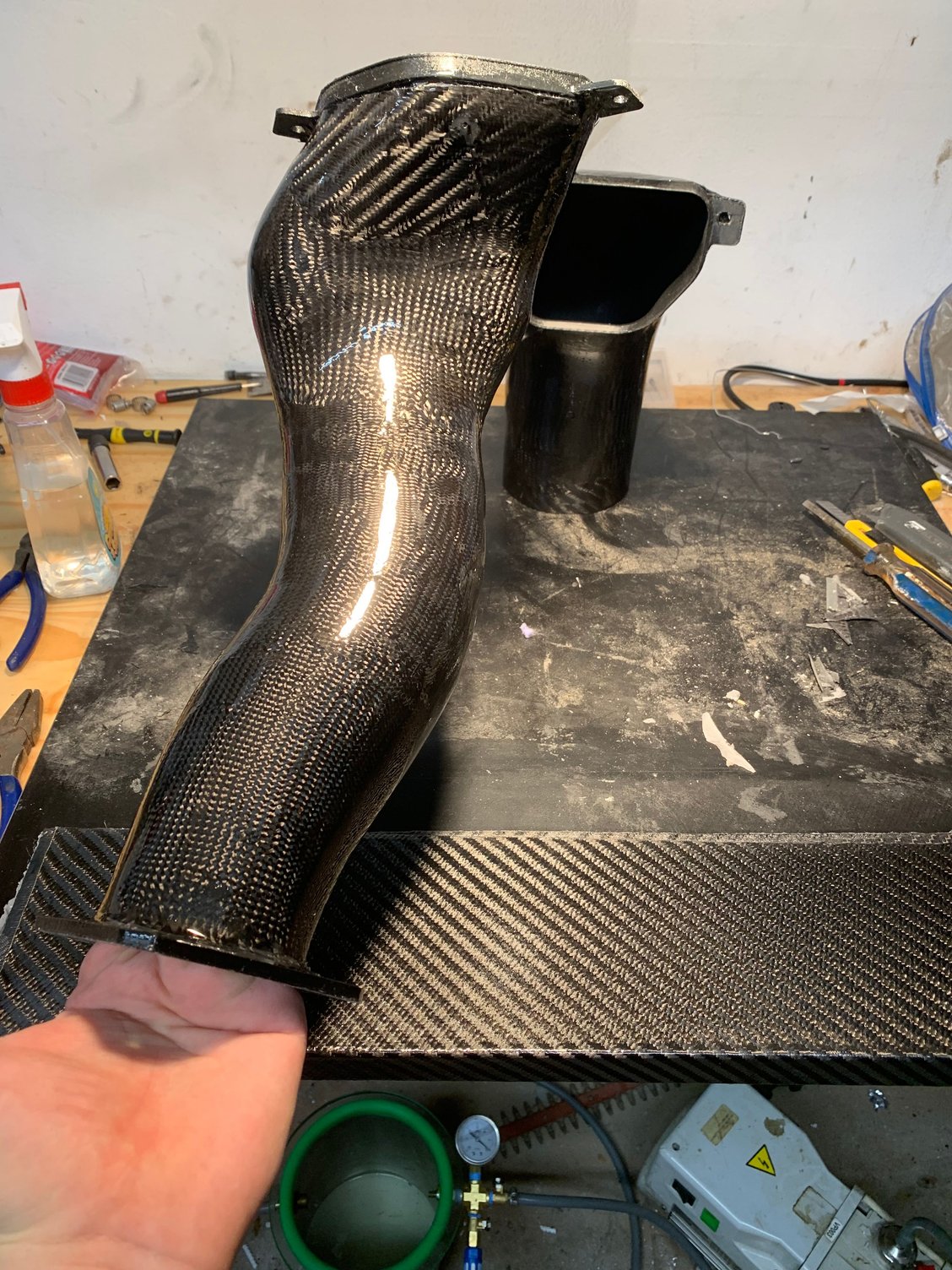 I will print it with a very thin wall of ABS (prob only about 1mm) and then wrap it in carbon fiber braided sleeve, which is available all the way up to 6" diameter. This way I'll be able to make a very strong and lightweight new intake tube.