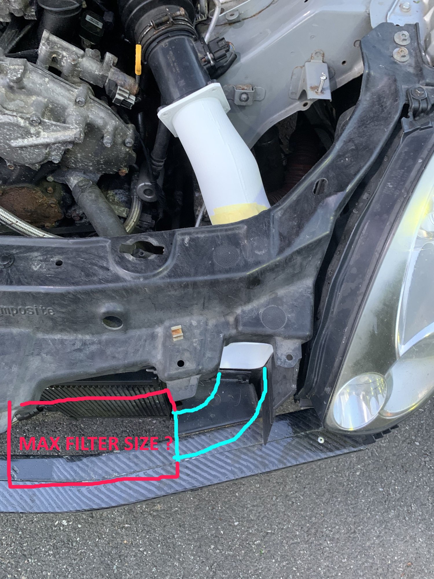 Not sure, might just leave it as is and try to stick the largest filter I can right behind the grill for now. June is coming up soon and so is my first track day, if I pick up more projects I'll start running out of time and I still have a new LSD sitting in a box I need to install.