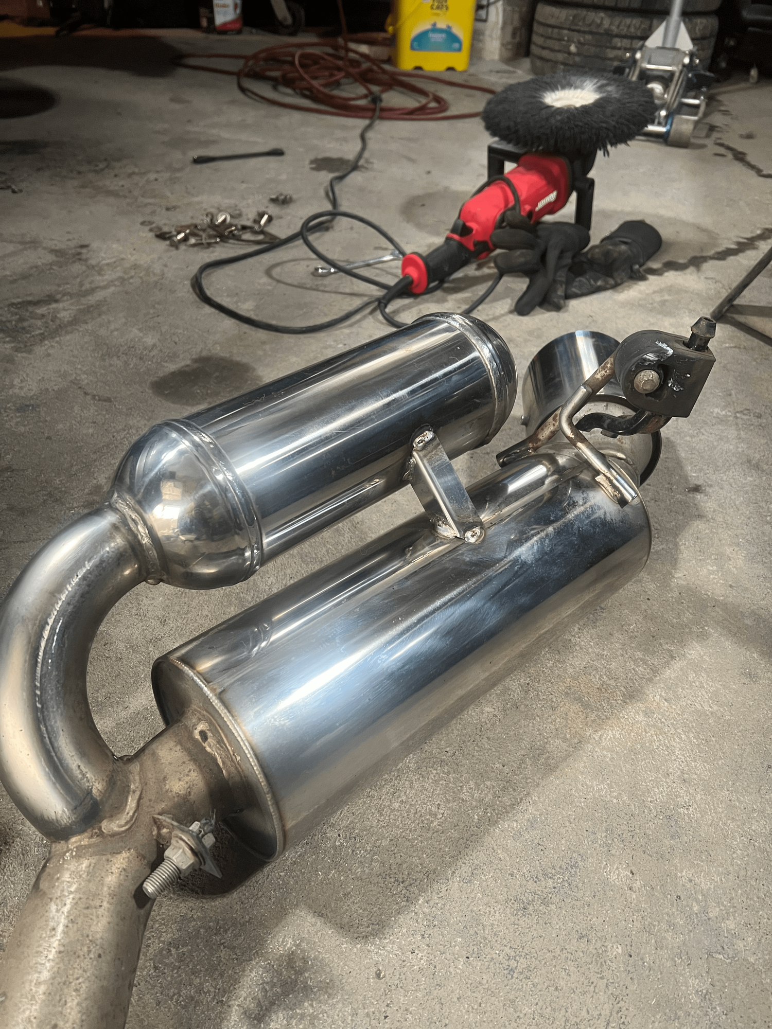 Since the welds are all still in really good condition I think you might have an actual legit HKS hi power. The legit HKS had a little paper sticker on this section of the exhaust that I circled but it would surely have fallen off or cooked off by now.