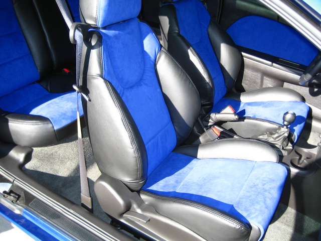 That was a custom header made by a Clear Image Automotive in Washington. Had a bung for factory O2 sensor and on for the LC-1 wideband sensor I installed and a high flow cat. The exhaust was a stainless 2.75" system from Random Technology. The interior was a custom Katzkins kit made for the Recaro seats that came with the car. I thought the blue was a good match for the paint.