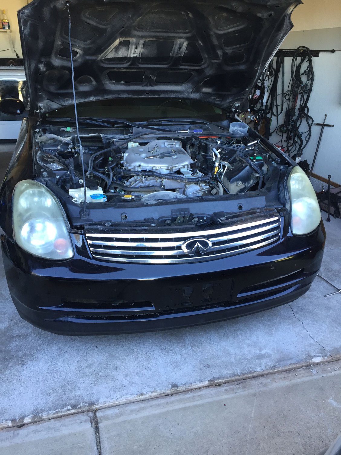 This is what I had to start with. 2005 Coupe staggered setup. Paid next to nothing for the wheels and tires, and I was overdue for a good DIY attempt.