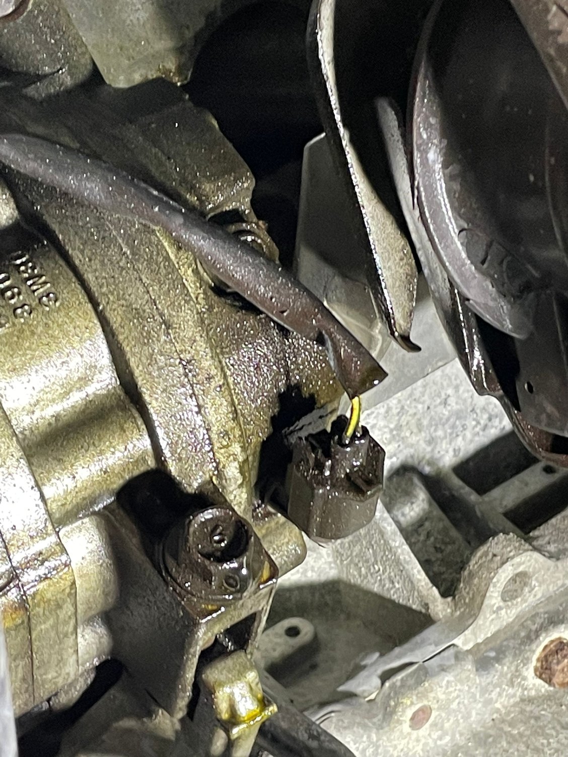 leaking on the backside/motormount entire angle on A/C compressor so it's from above