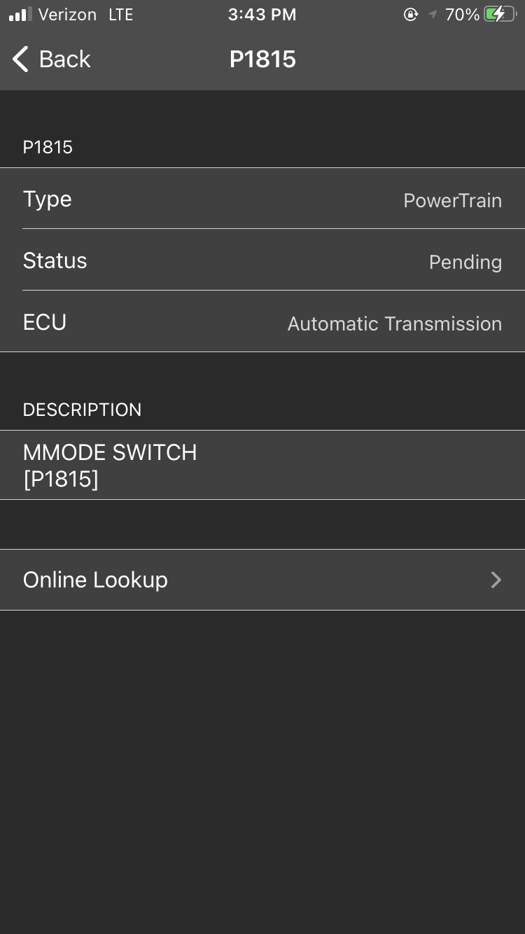 edit 2: cleared both codes yesterday and after a drive, neither of them returned. Went for drive this morning, and afterwards the P1815 MMode Switch was pending again on the scanner. I have had some slight issues with manual mode in the past but it works so I think it's just that little switch in the shifter assembly getting stuck when going up/down once in a while. I don't see how that would cause my RPM drop in Drive though, let me know what you think here. Thanks