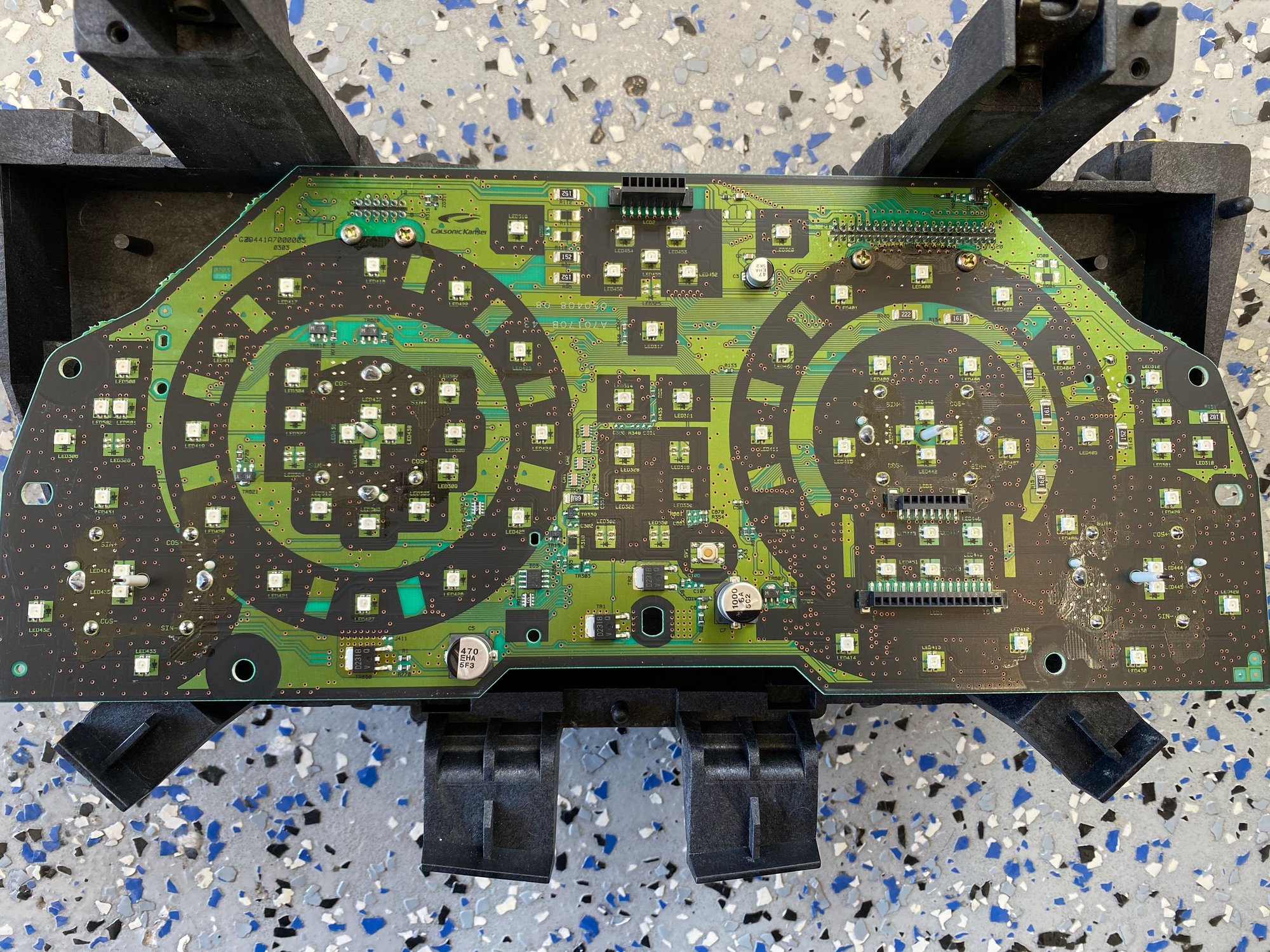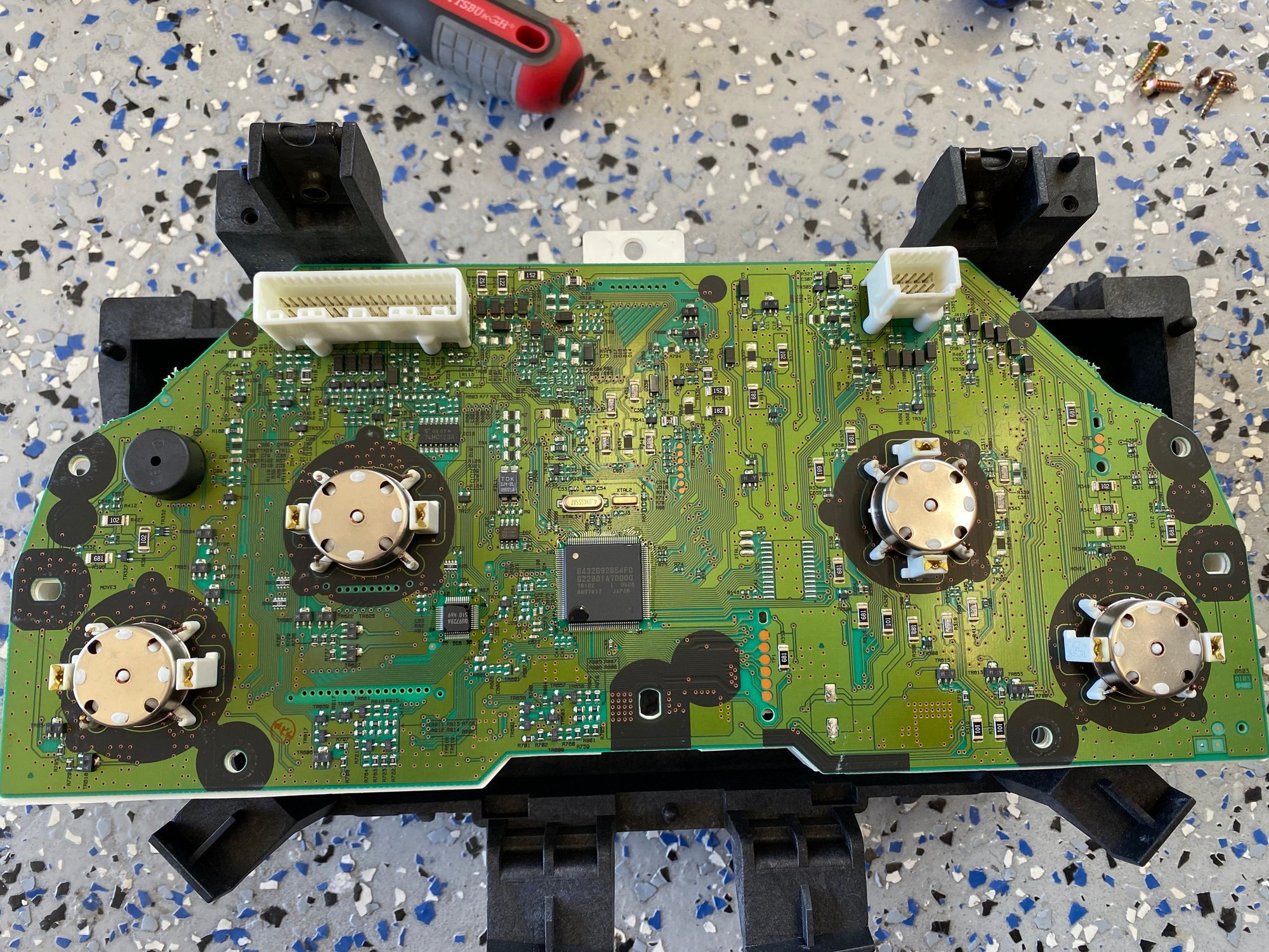 I bought many used clusters in hopes of experimenting and figuring out “the fix” for the notorious manumatic issue but had no luck. There are about a thousand resistors and other kinda electronic chips on the board….really really tiny ones. I used a fine point soldering iron to re-solder all the ones I possibly could, but that didnt help. Most of the chips are impossible to solder by hand because of their micro size. I have even went over the whole board with a heat gun in an attempt to soften up the solder and maybe re-weld and broken contacts. Still no help!