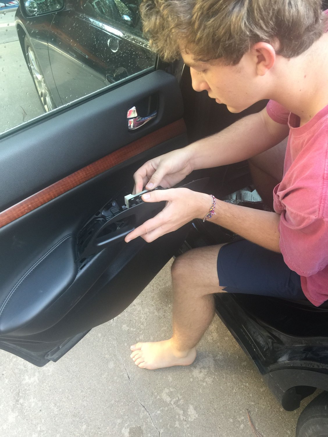 1. We removed the interior door panels as shown in the video (except we did not disconnect the wiring, then remove the switches, we simply removed the switches from the door trim with the wiring still plugged into the switches - one less step).