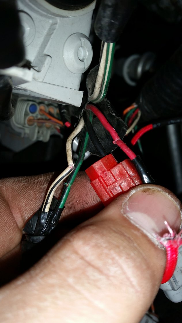 Coming directly from the signal bulb is a white/black wire and a green/black wire. There is also a black then a red wire that come from something elss but then some how eventually connects to the turn signal.