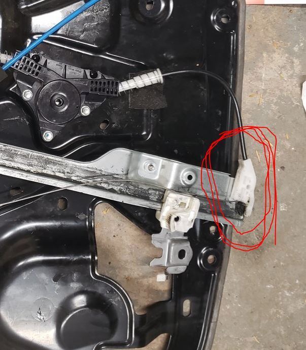 I messed up trying to replace my door handle. Listening to two videos made me accidentally remove my window regulator assembly and I thought it would've been easy to put back together. I have no clue if im doing it wrongly or i just need to put more force into it. I pushed in the springs with the plastic beneath it and had a helper try to put the loosened cable into place but for some reason one end of the blue cable is not going into its wheel. I don't know if i just need to pull on the wire some more but at that point it just feels like there's no more left to pull. I have pushed those springs all the way in where the coils are pressed against each other and cannot be pressed down anymore. I have noticed the blue cable goes under the black cable so could this be an issue? Thanks again for anyone who replies.