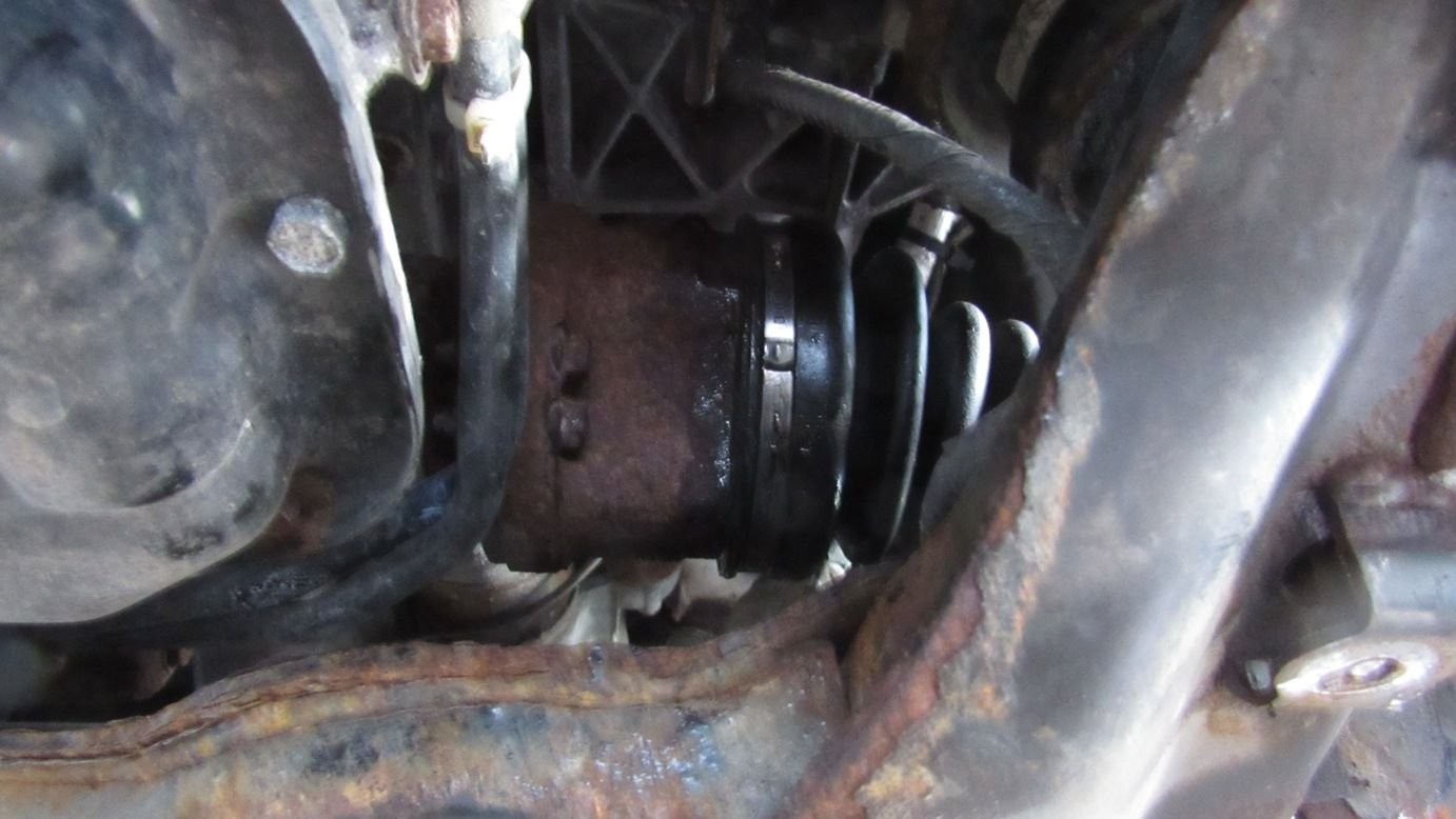 Be careful not to pull out the CV boot like I did. Luckily I got a new clamp on: